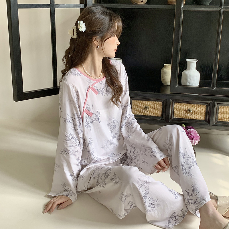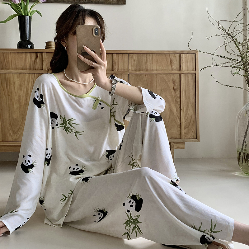 パンダ 2点セット パジャマ レディース 可愛く 快適 秋用 仏系 レディース 禅風 春秋 夏用 シルクプリント ID1820