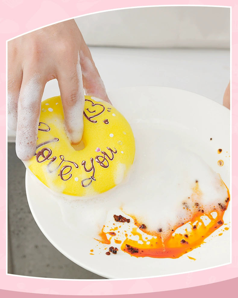 ドーナツ型 食器洗いスポンジ 耐久性 厚手 キッチン清掃専用 スポンジクロス 汚れ落とし マジッククロス 柄ランダム ID2205