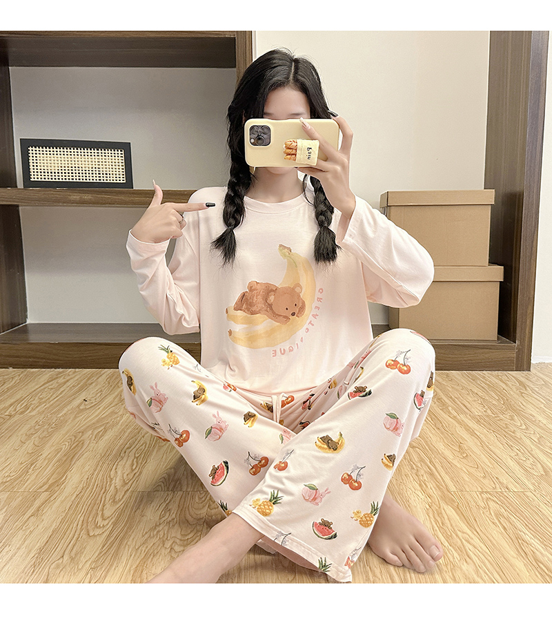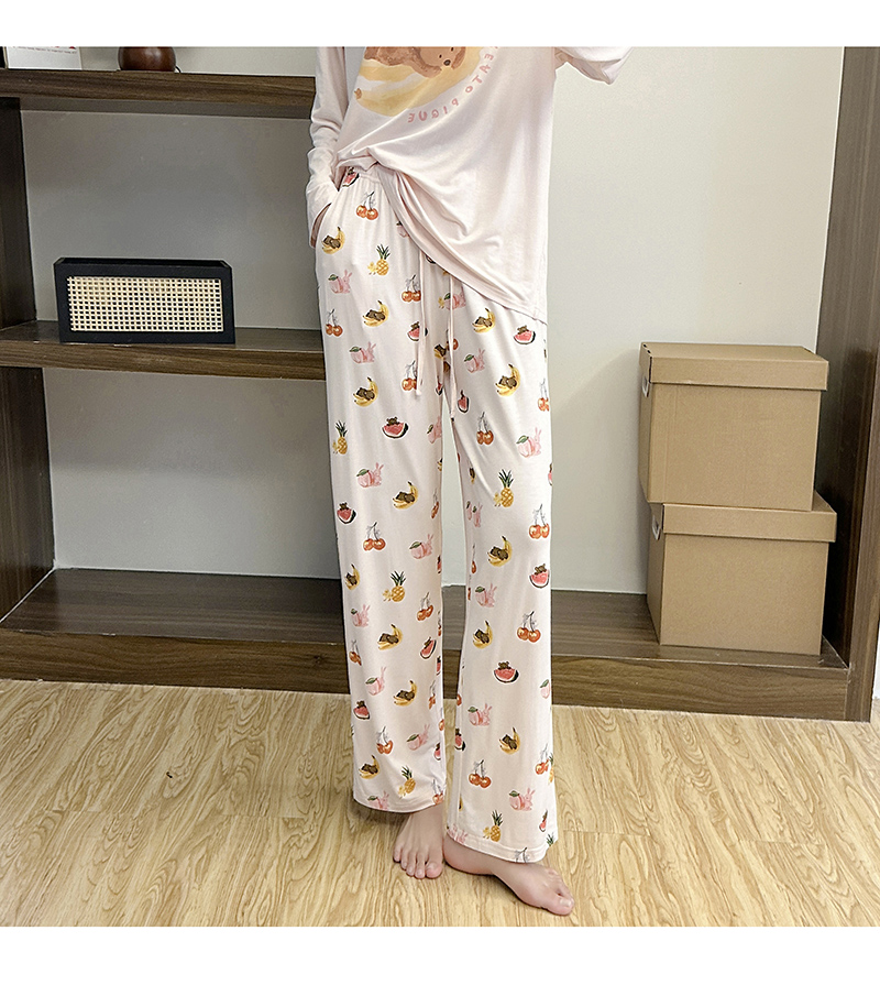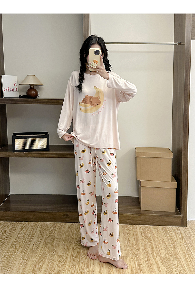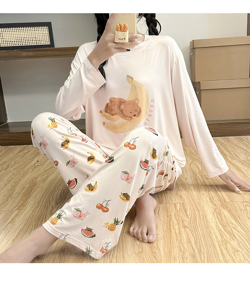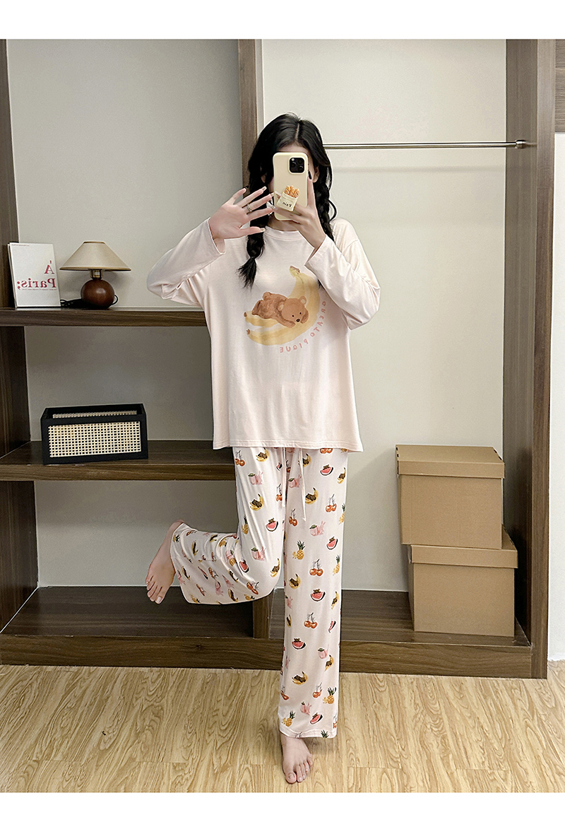 フルーツ ベア パジャマ レディース 春秋 長袖 パンツ ラウンドネック 快適 ホームウェア セットアップ 冬 暖かい 柔らかい 吸湿 保温 おしゃれ ルームウェア 自宅用 リラックス レディース用 着心地 シンプル ナチュラル ゆったり ID2232