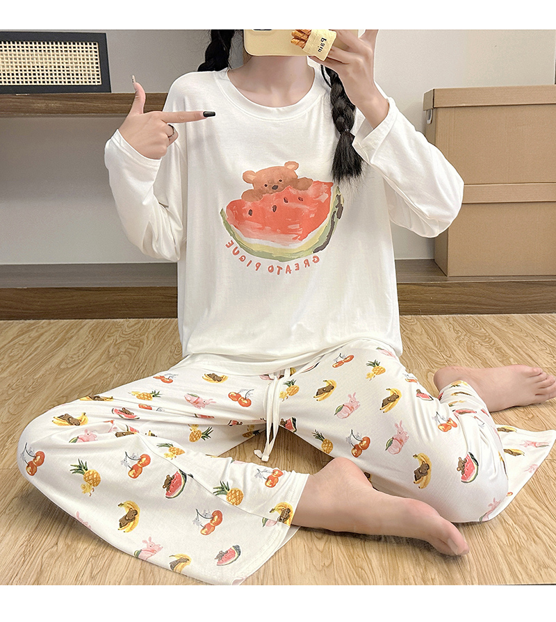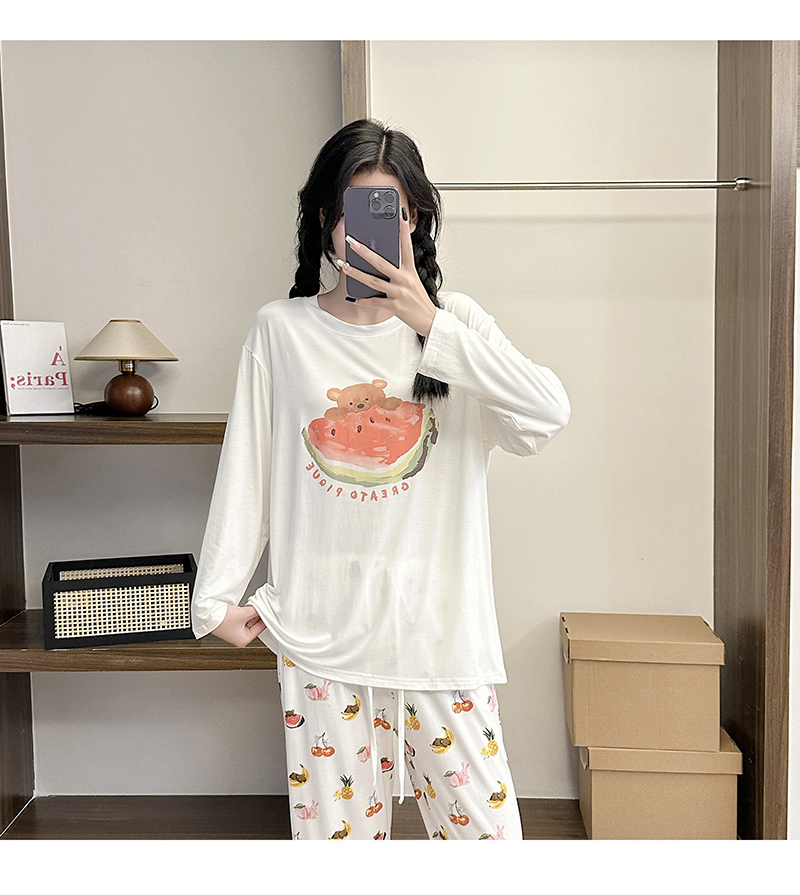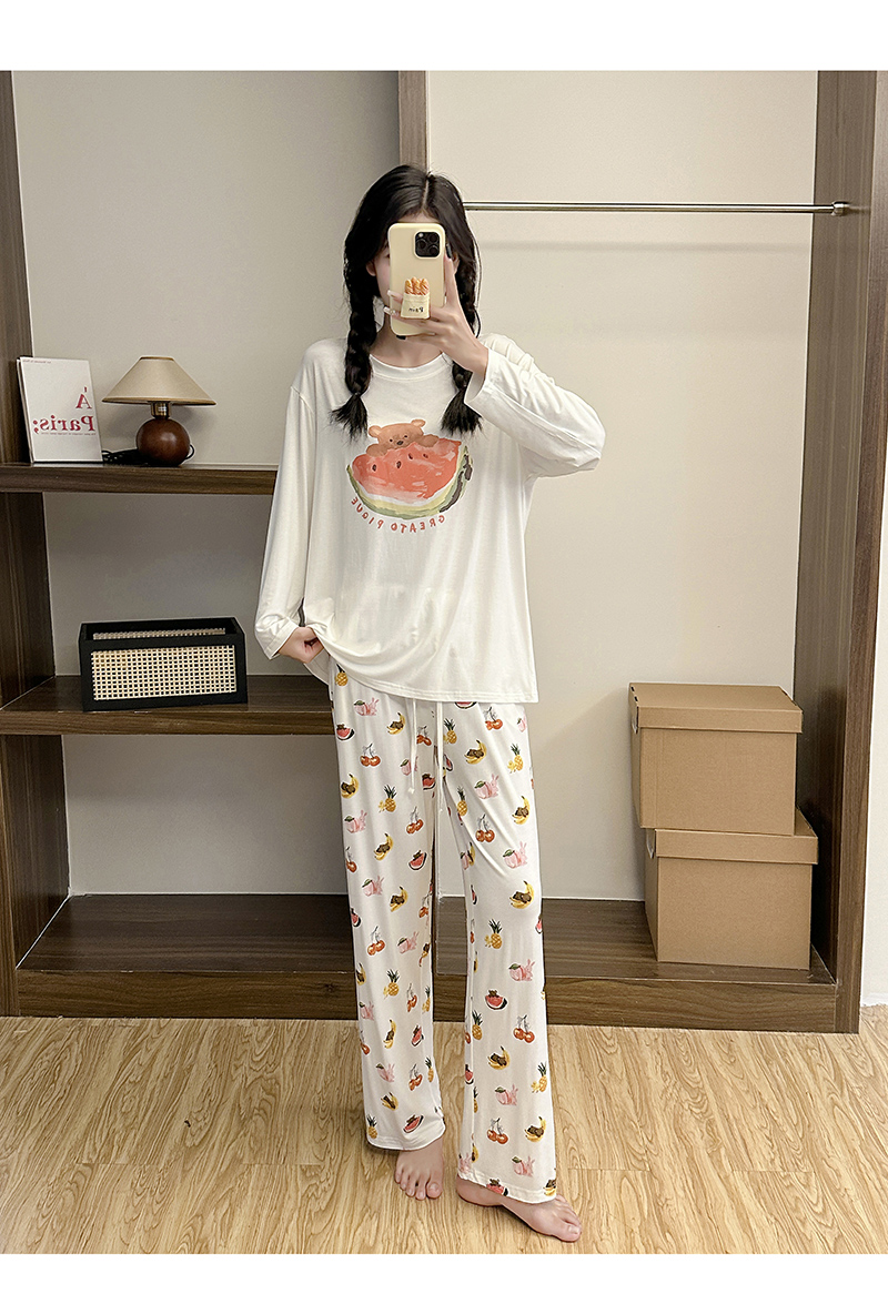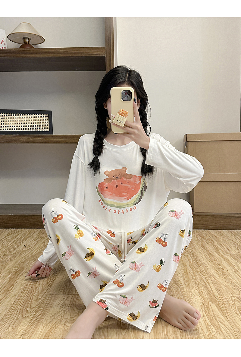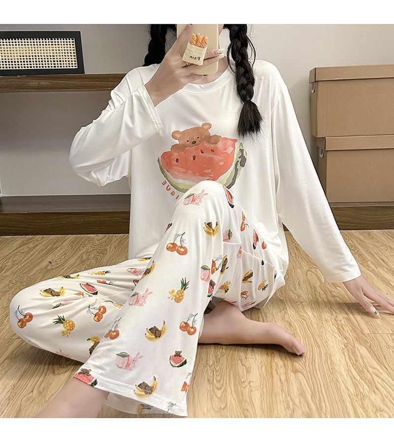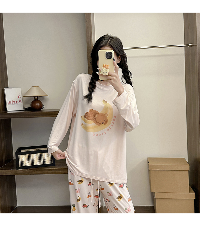 フルーツ ベア パジャマ レディース 春秋 長袖 パンツ ラウンドネック 快適 ホームウェア セットアップ 冬 暖かい 柔らかい 吸湿 保温 おしゃれ ルームウェア 自宅用 リラックス レディース用 着心地 シンプル ナチュラル ゆったり ID2232