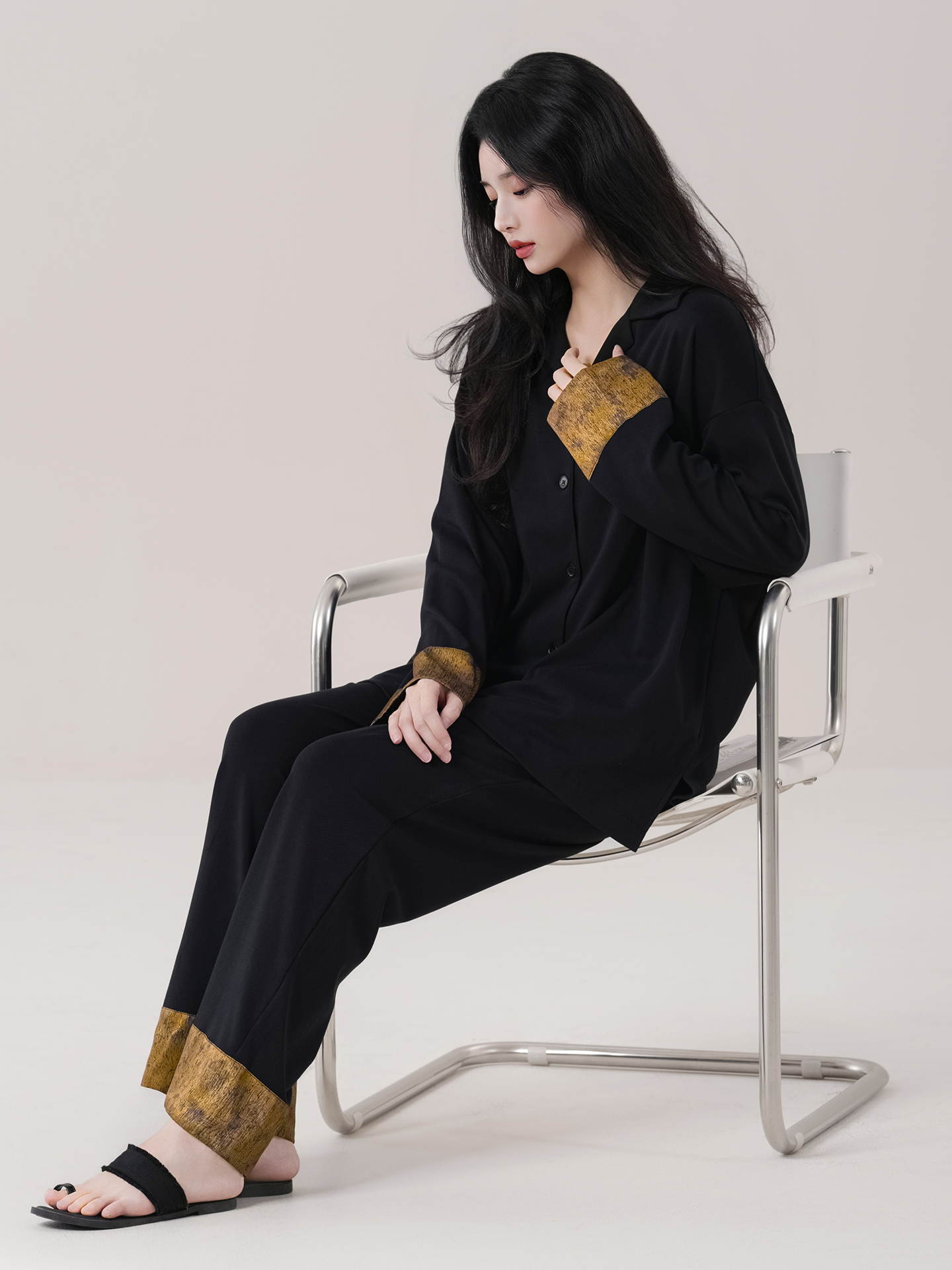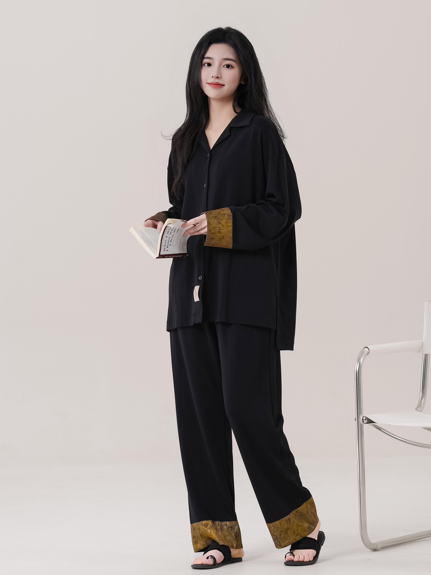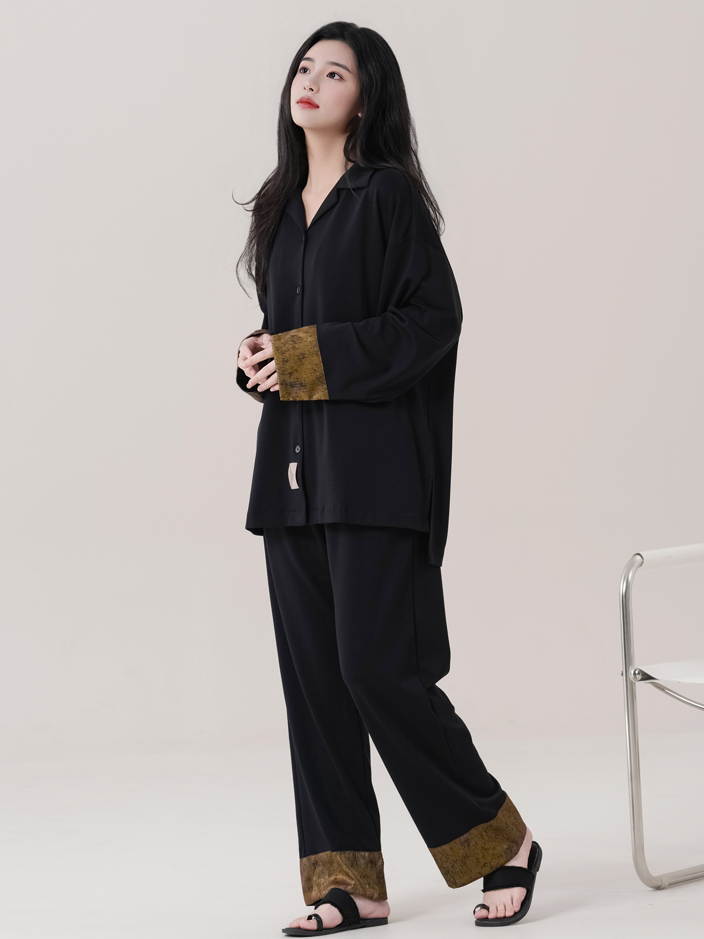 黒 長袖 パンツ ハローキティ 綿100% レディース パジャマ セットアップ ラウンドネック キャラクター かわいい 外出可 ホームウェア 軽やか 着心地 シンプル ナチュラル ルームウェア 自宅用 ID2667
