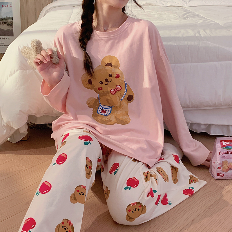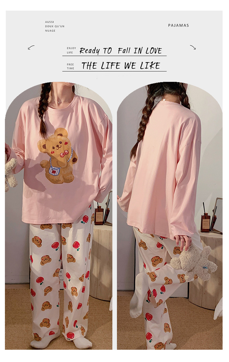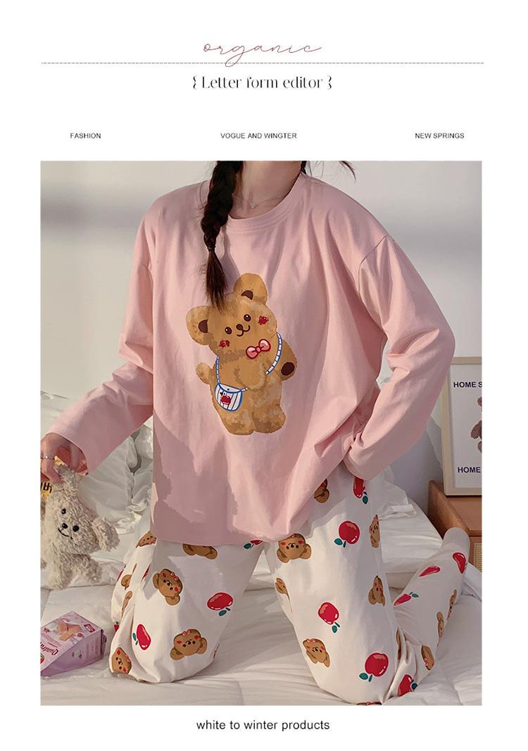 モダール インスタ 人気 新作 キャラクター くま パジャマ レディース 長袖 パンツ ラウンドネック ゆったり ホームウェア セットアップ おしゃれ 軽やか 着心地 ナチュラル ルームウェア 自宅用 ID2545