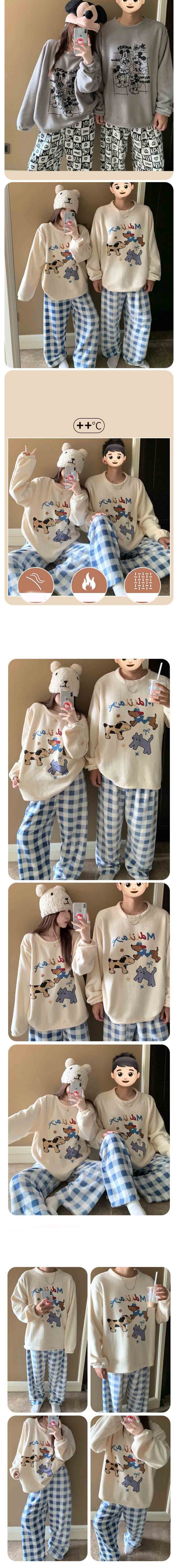 キャラクター ビーズファー カップル パジャマ 冬 長袖 ラウンドネック 保温 甘い かわいい ホームウェア セットアップ 外出可 暖かい 柔らかい 快適 おしゃれ ルームウェア ID2696