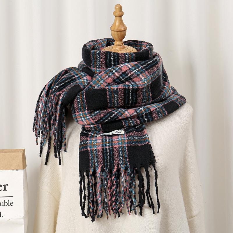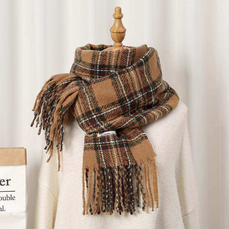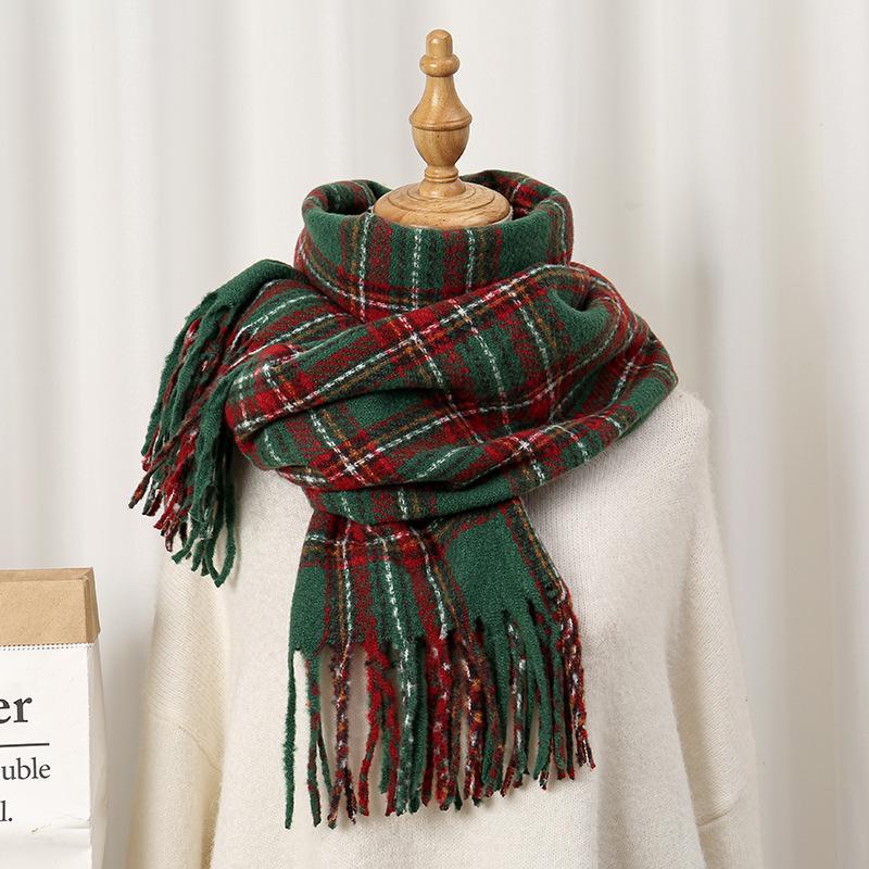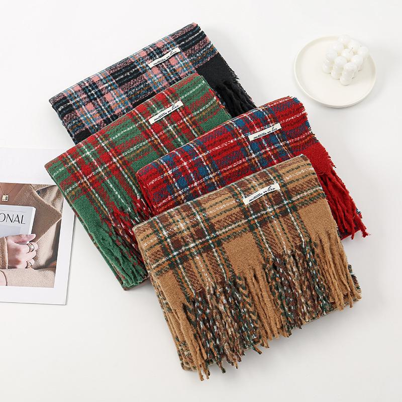 秋冬用 レトロ インフルエンサー スタイル 保温 ニット スヌード クリスマス 雰囲気 レッド チェック スカーフ レディース ID2878
