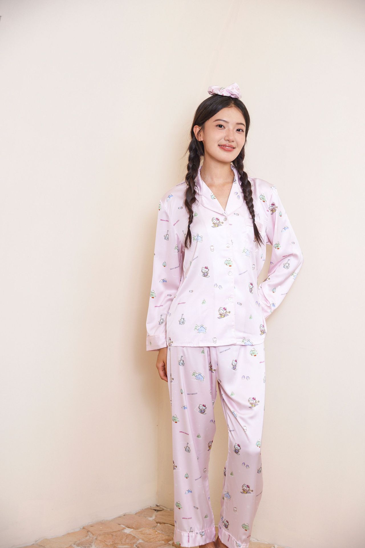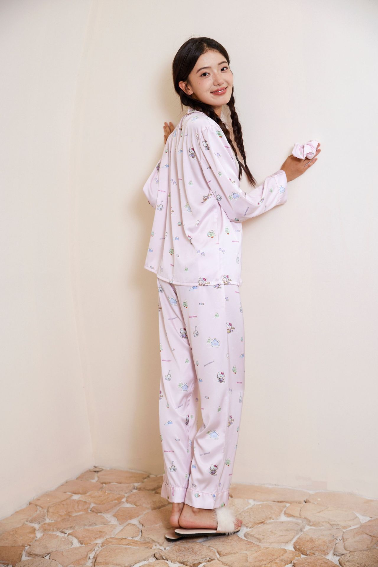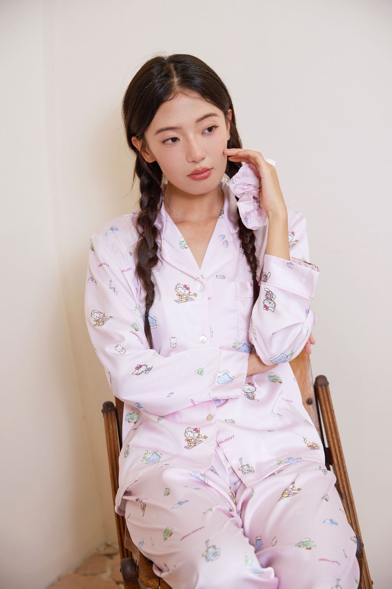 パジャマ 前開き レディース スキー猫 キャット アイス シルク パジャマ レディース 夏 春 秋 かわいい 高級感 セット ID412