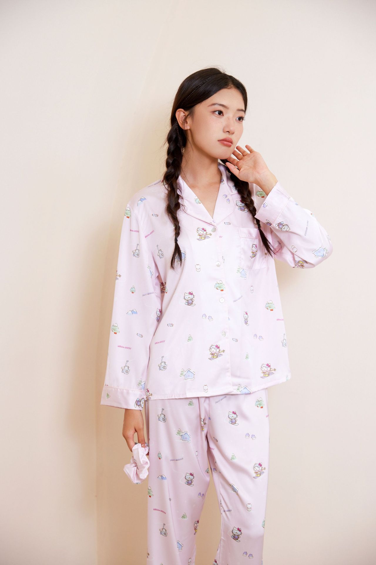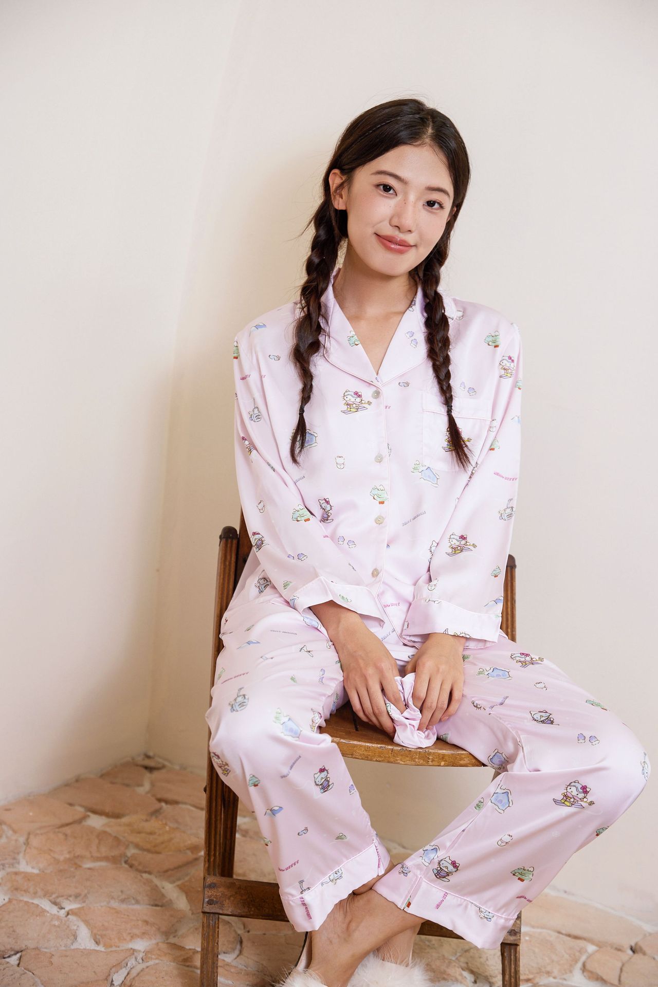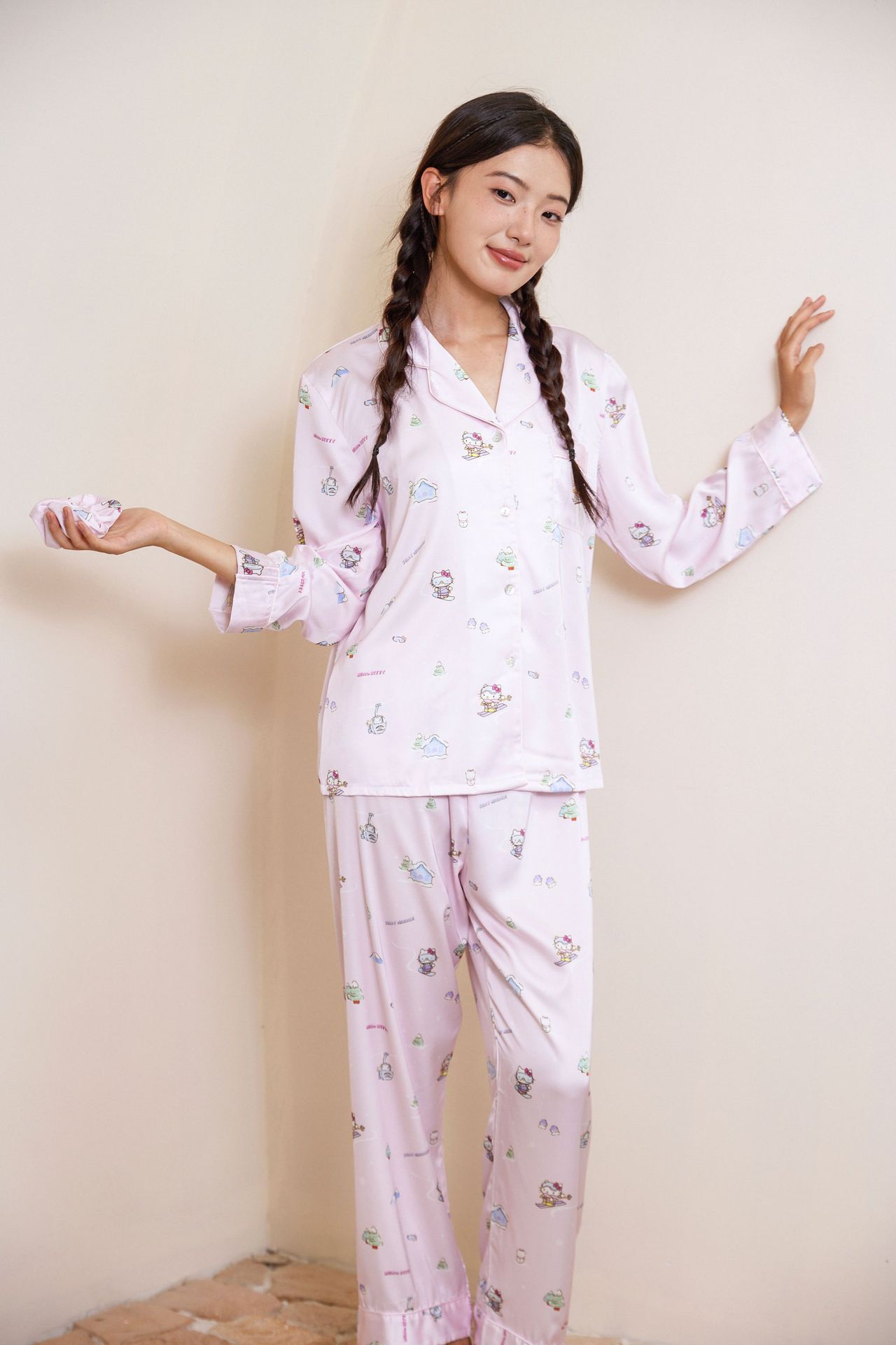 パジャマ 前開き レディース スキー猫 キャット アイス シルク パジャマ レディース 夏 春 秋 かわいい 高級感 セット ID412