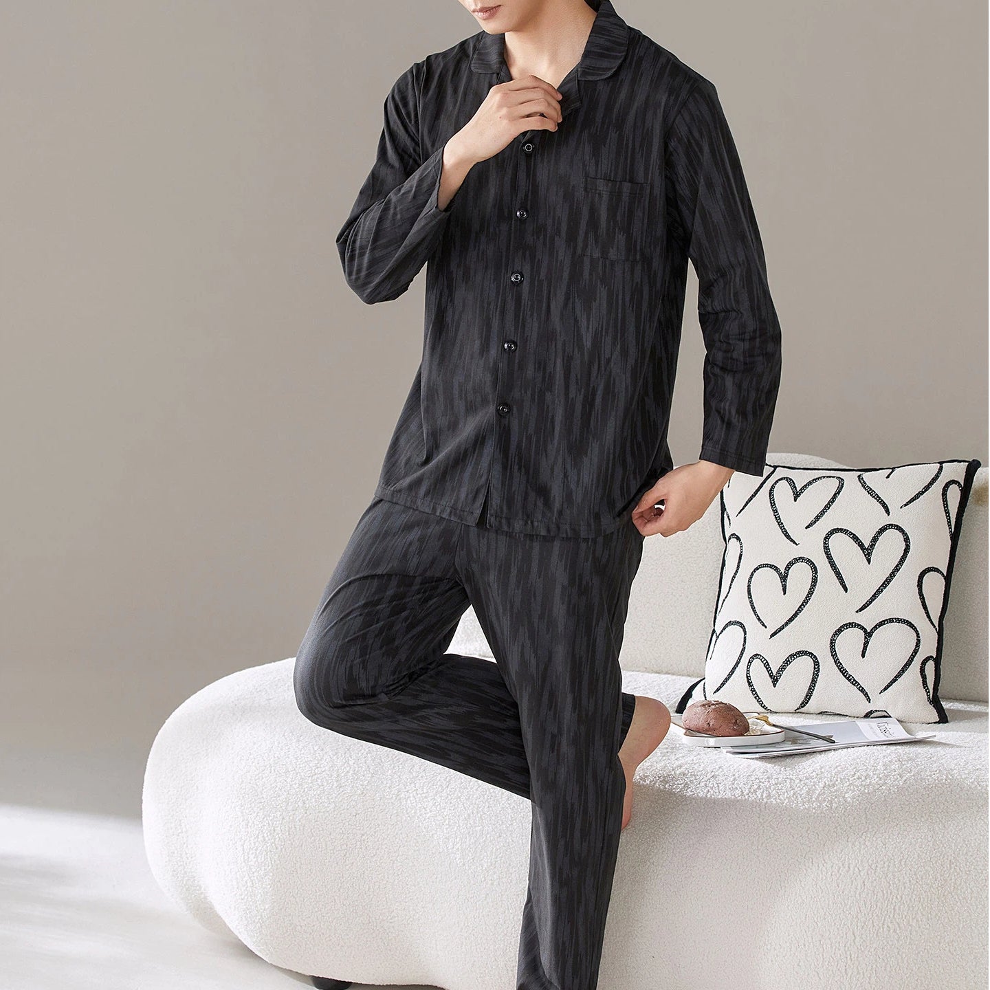 春秋 レディース かわいい グレー 韓国風 パジャマ 長袖 ロングパンツ ルームウェア かわいい 大きいサイズ 薄手 柔らか 入院 出産 部屋着 寝巻き ID4285