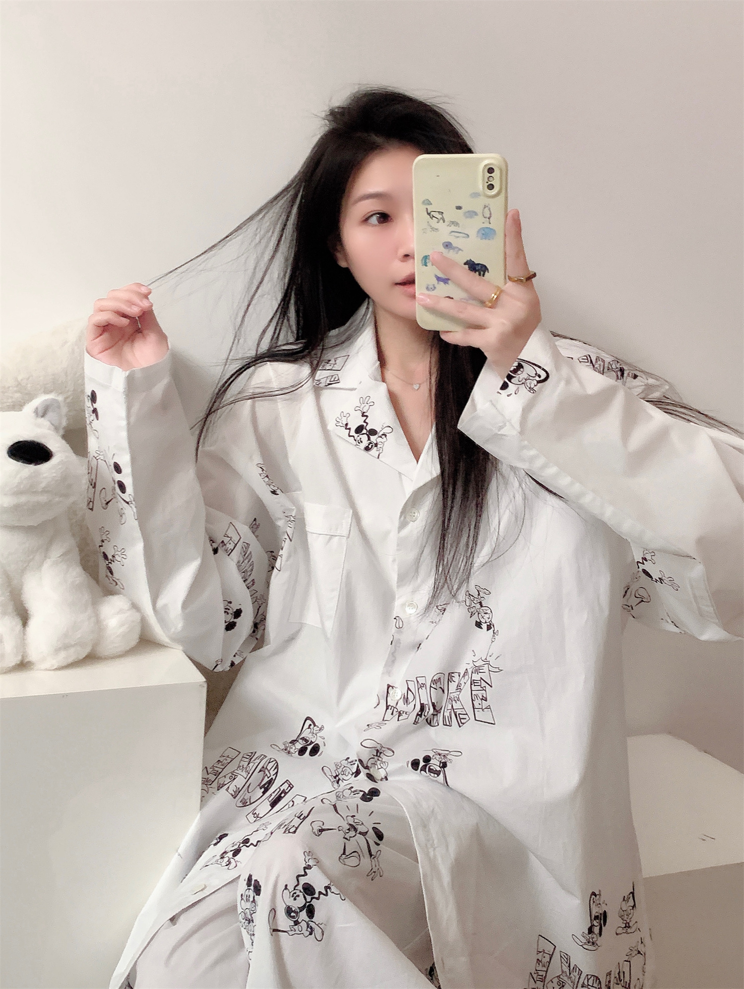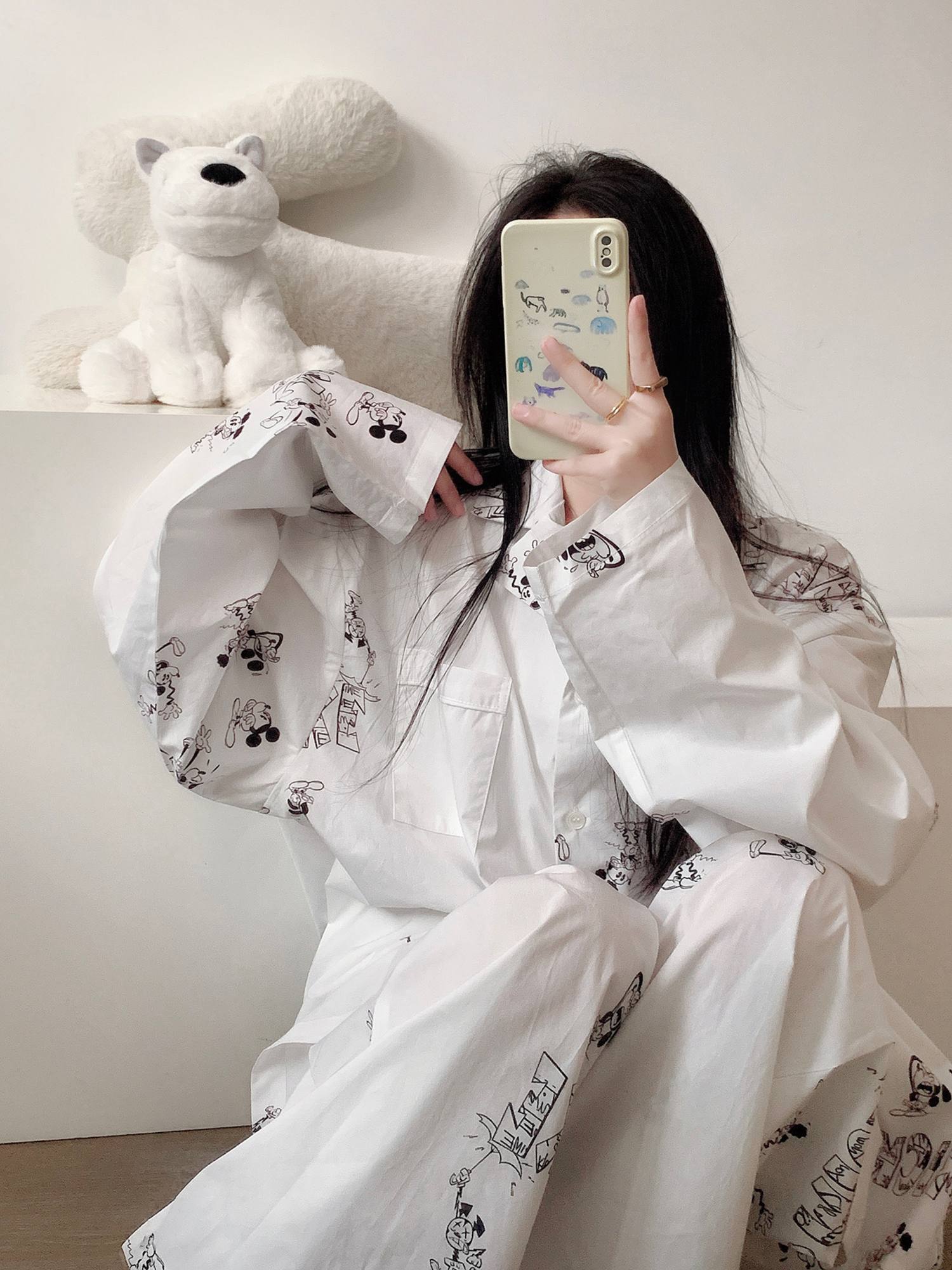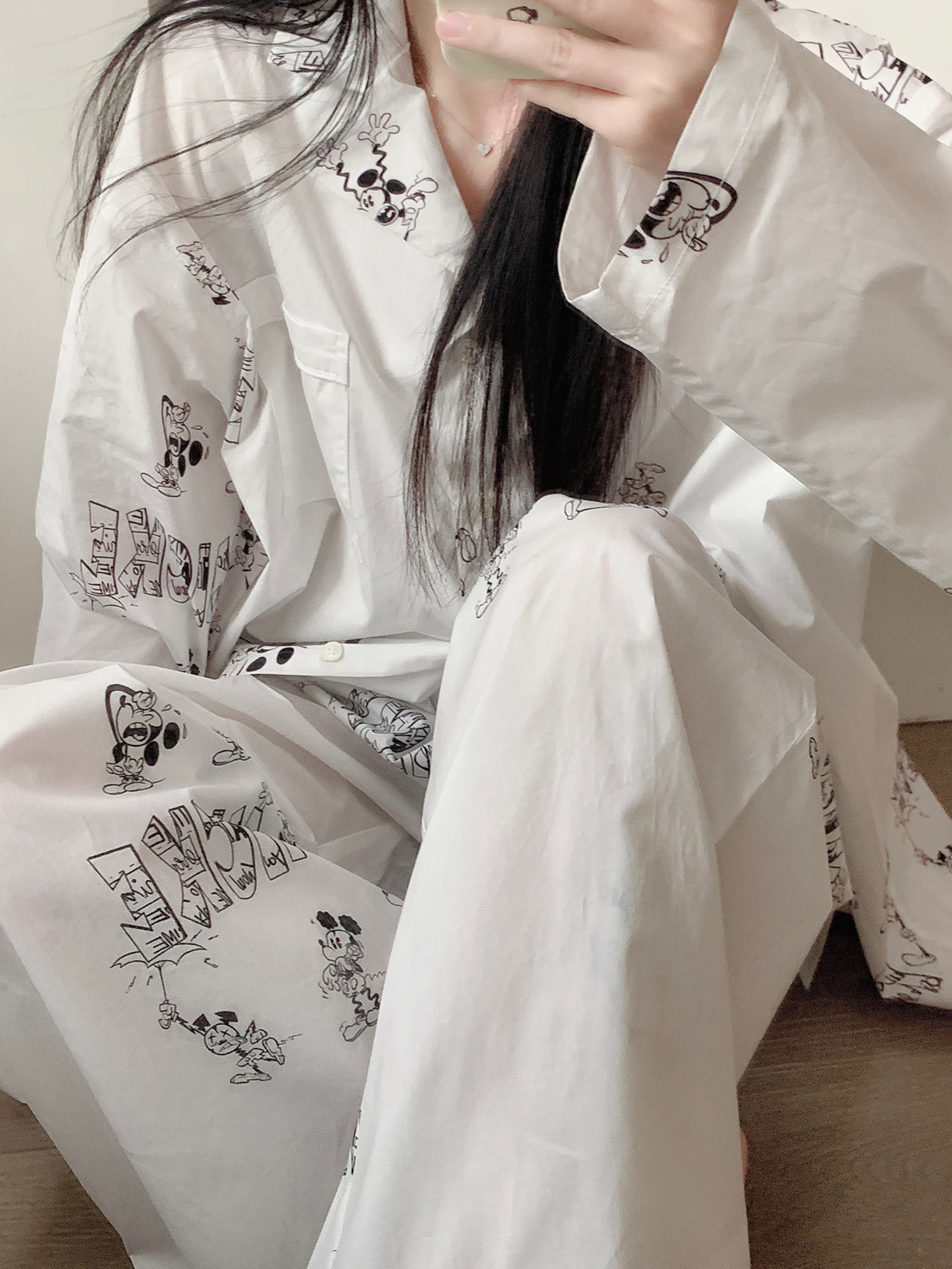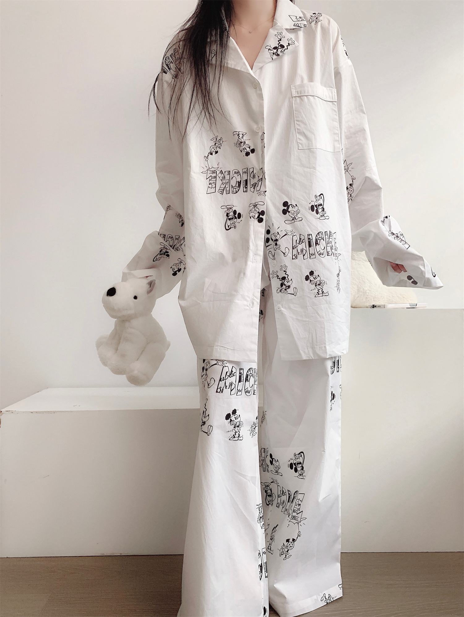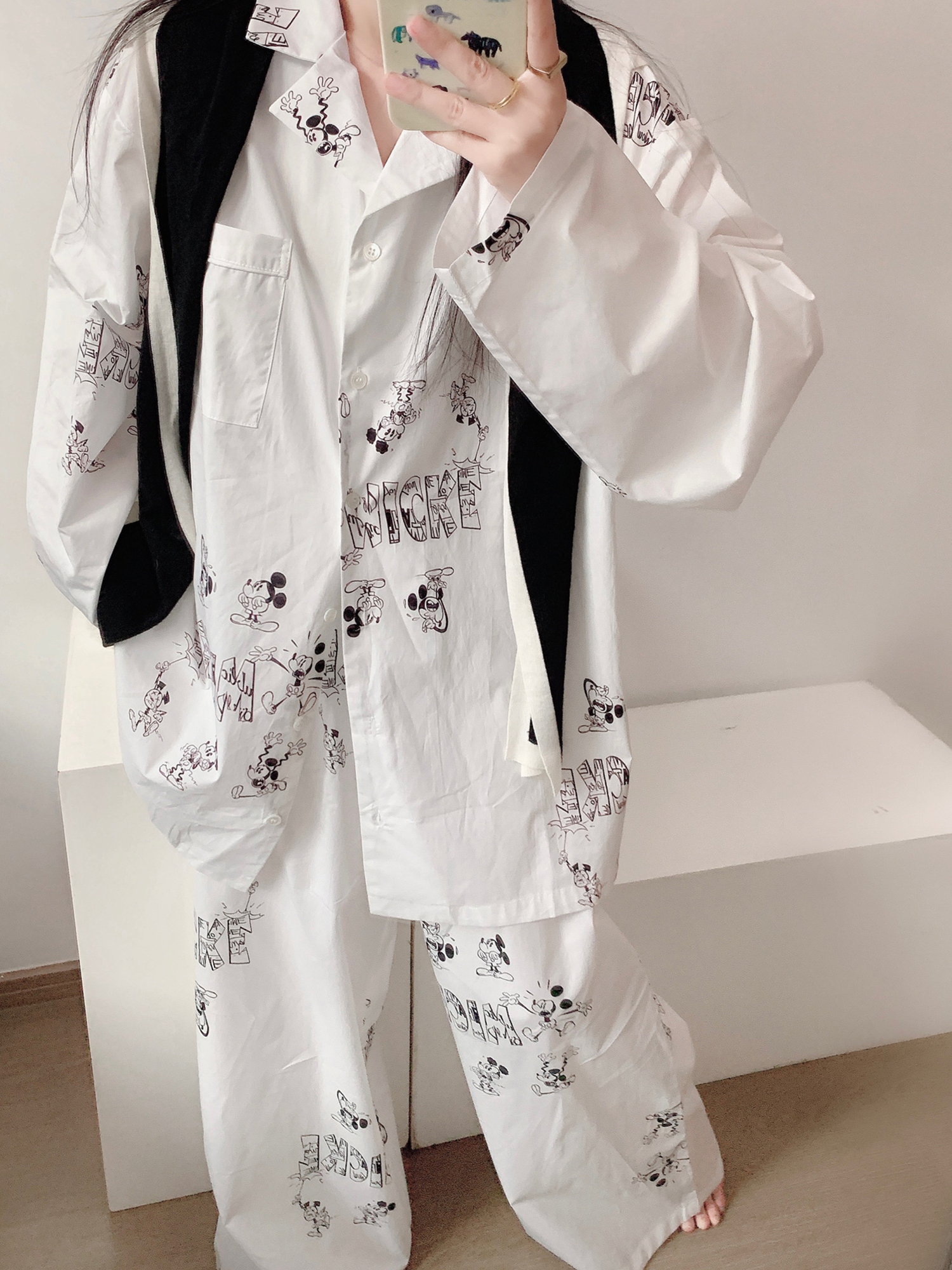 ミッキー プリント ワンマイルウエア パジャマ レディース 春 秋 新作 カーディガン 長袖 長パンツ ホームウェア セット 外出可能 ID446