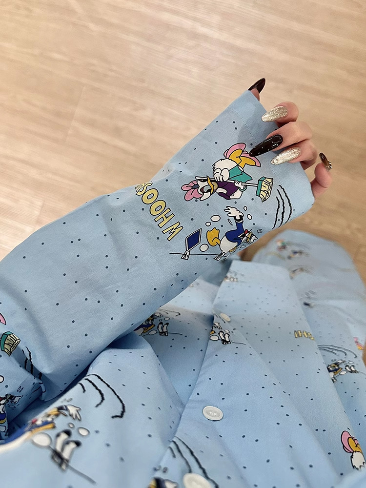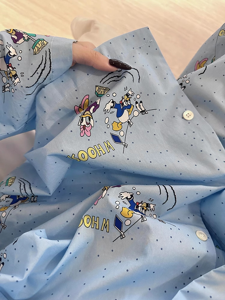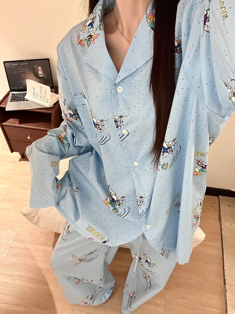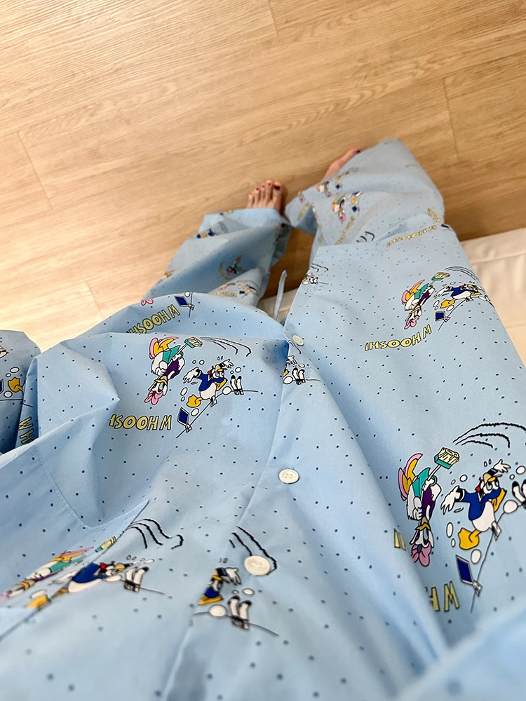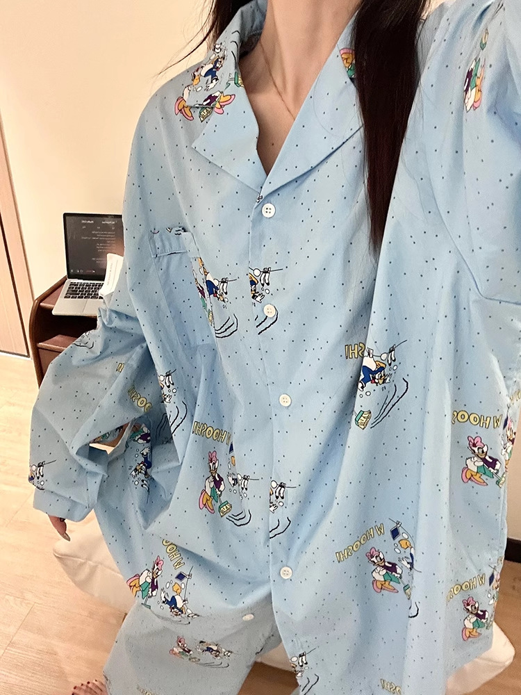 ゆったり 韓国 カートゥーン プリント ワンマイルウエア パジャマ 春 秋 レディース ホームウェア 大きい サイズ セット ID447