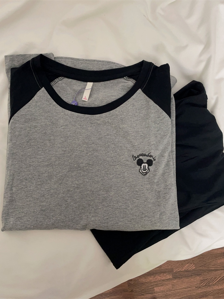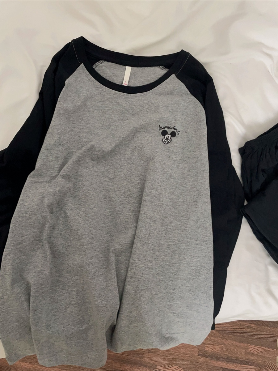 韓国風 レディース パジャマセット 2点セット 春秋冬 長袖 長ズボン ルームウェア 外出可 カートゥーン イラスト アルファベット カラーブロック ID493