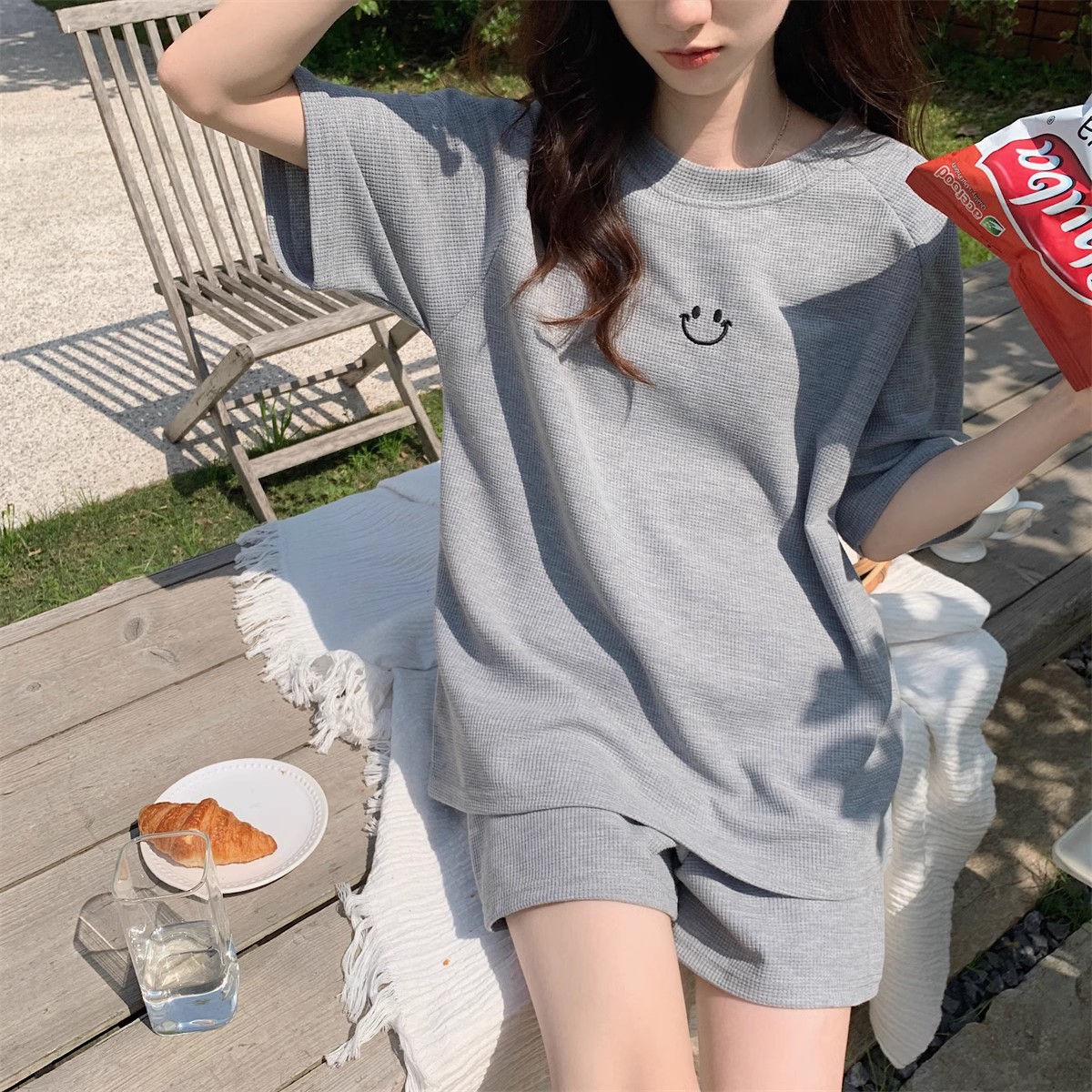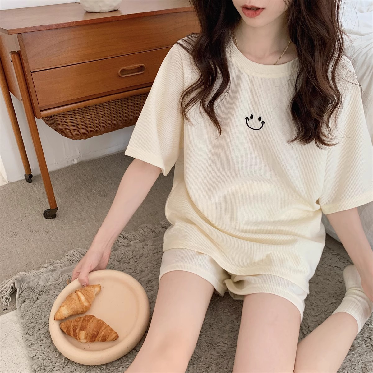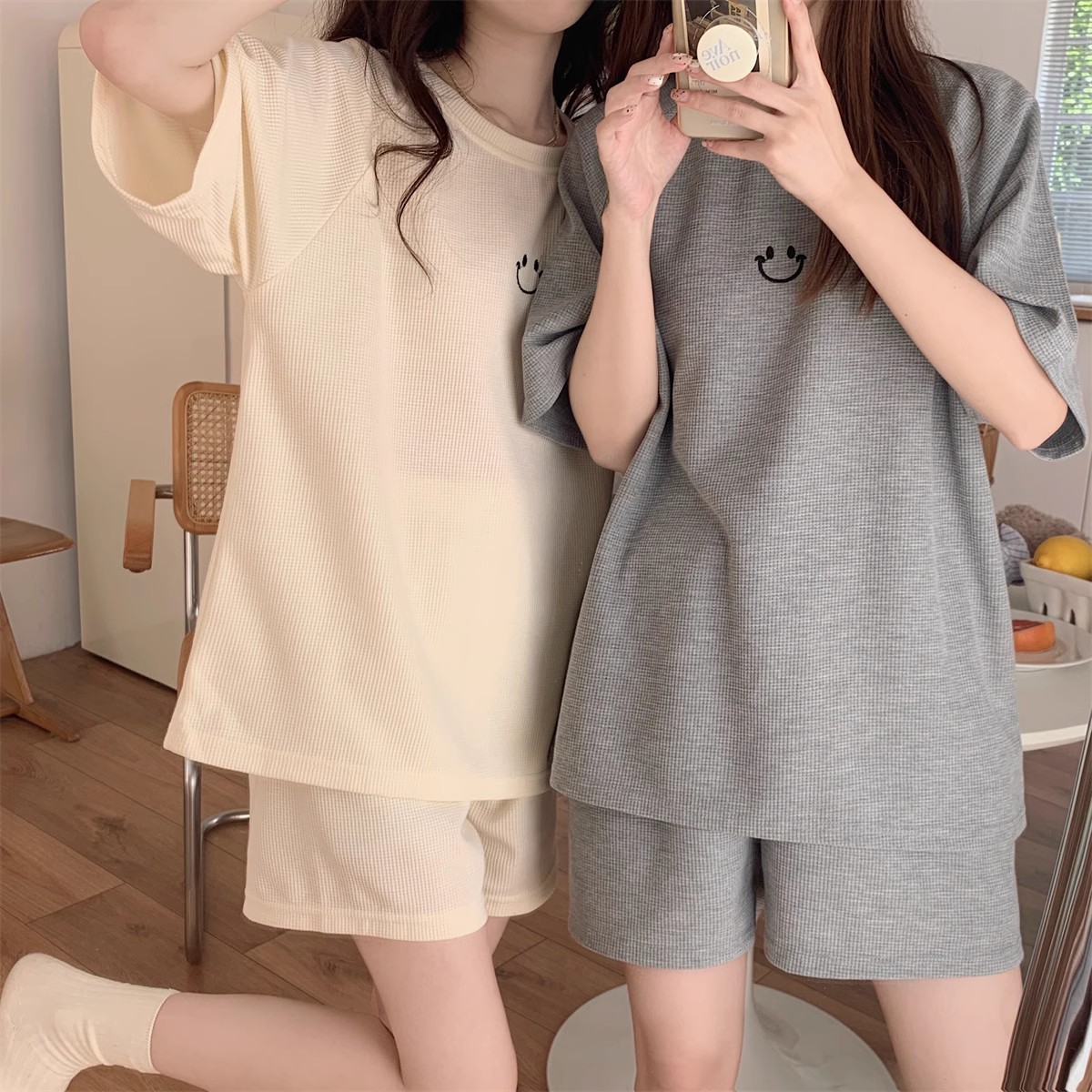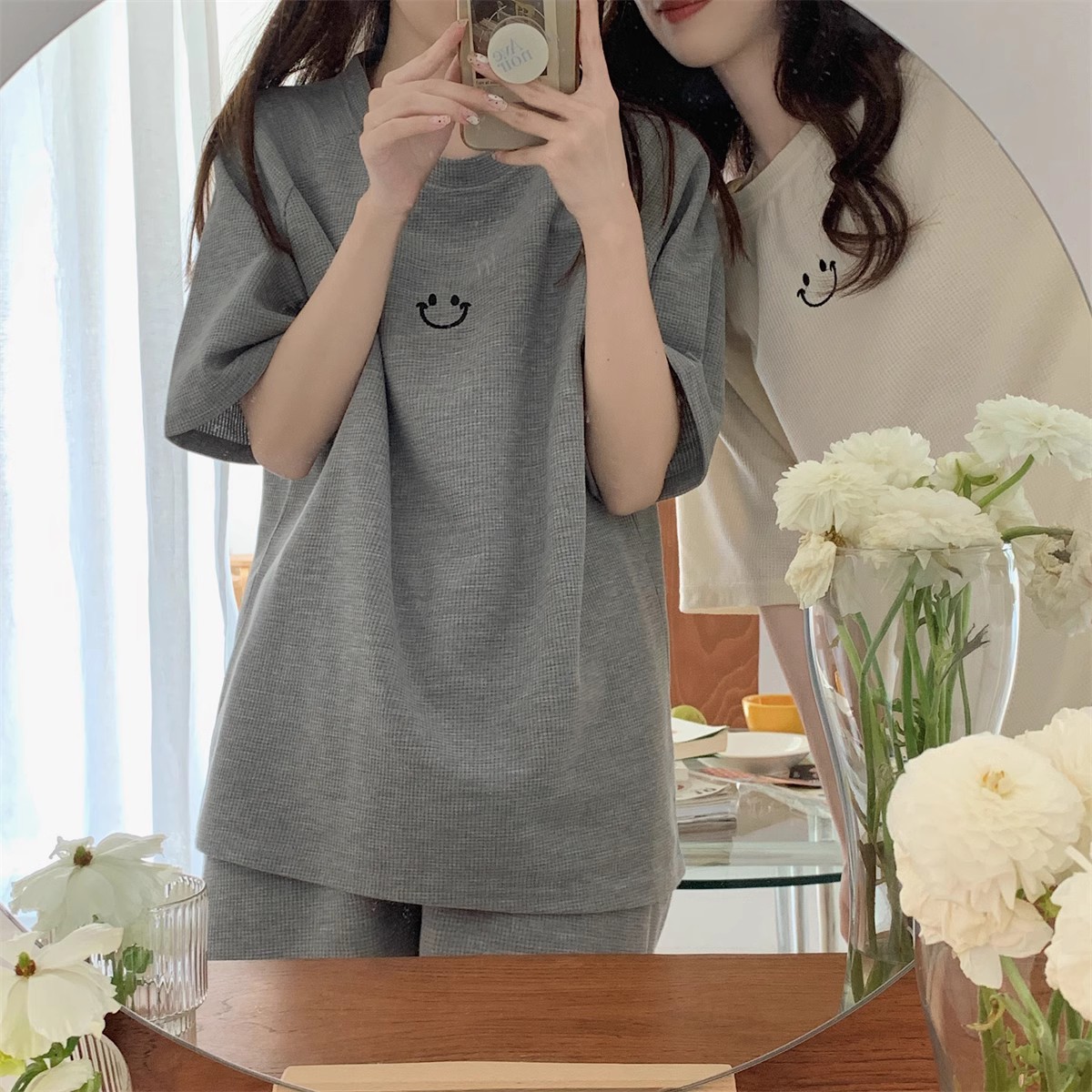 レディース 韓国風 インスタ映え ワッフル パジャマ 夏用 半袖 スマイル スポーツ ルームウェア かわいい ID615