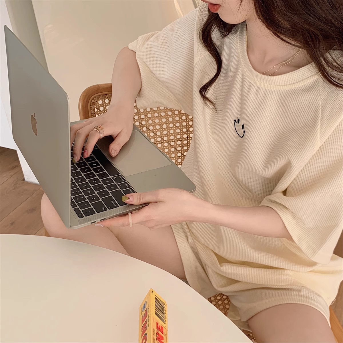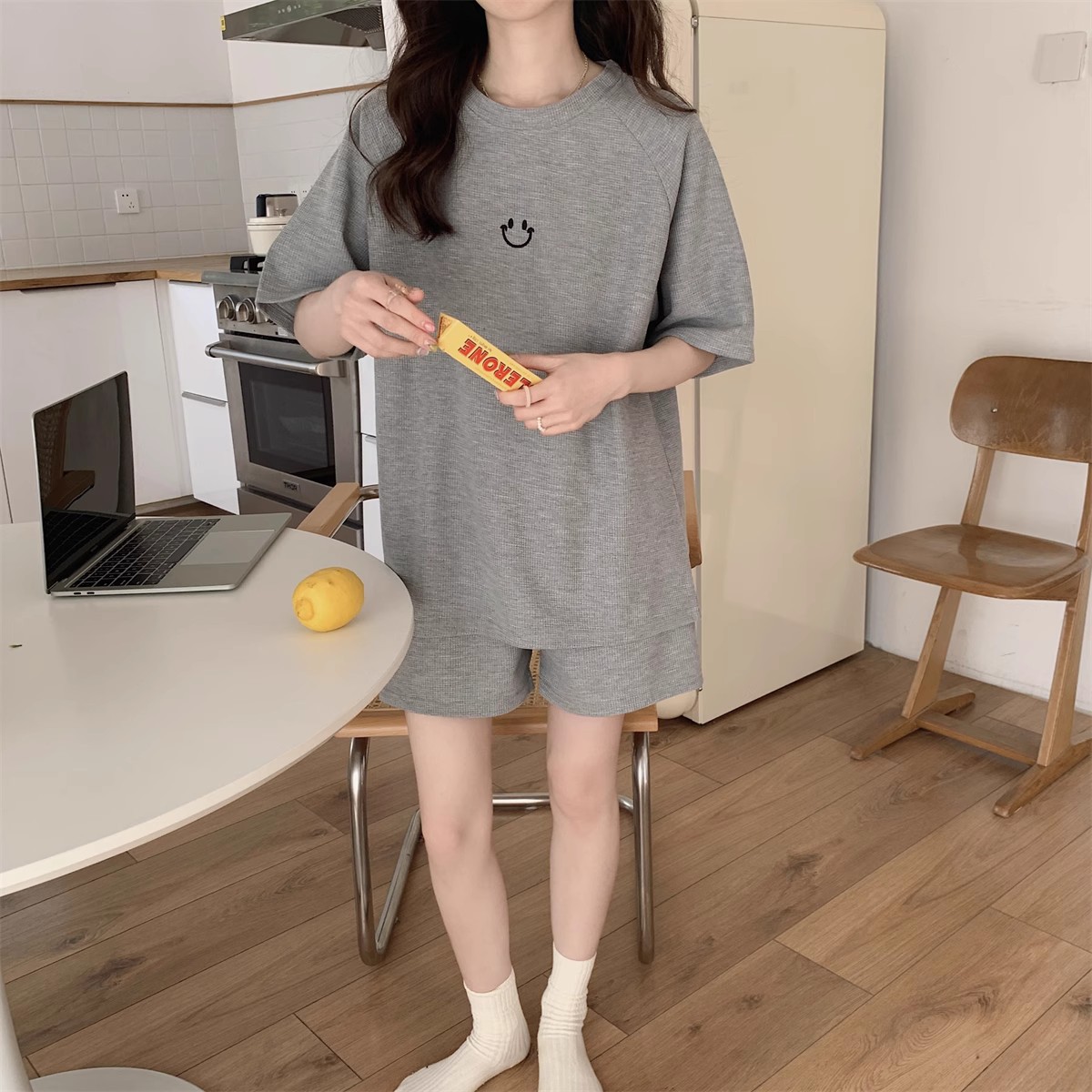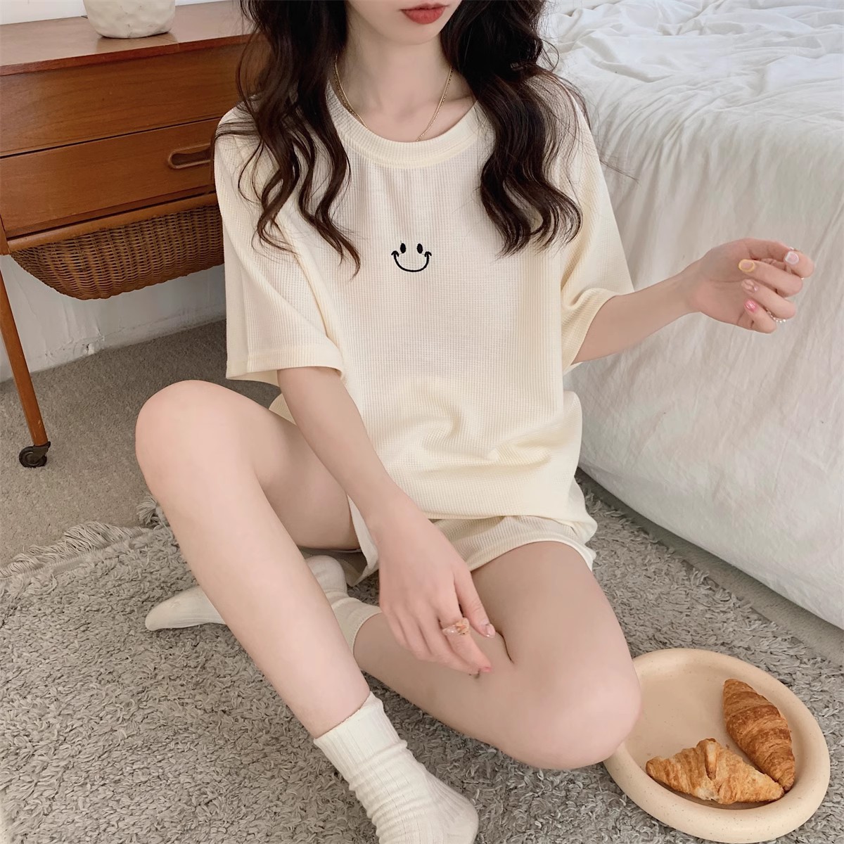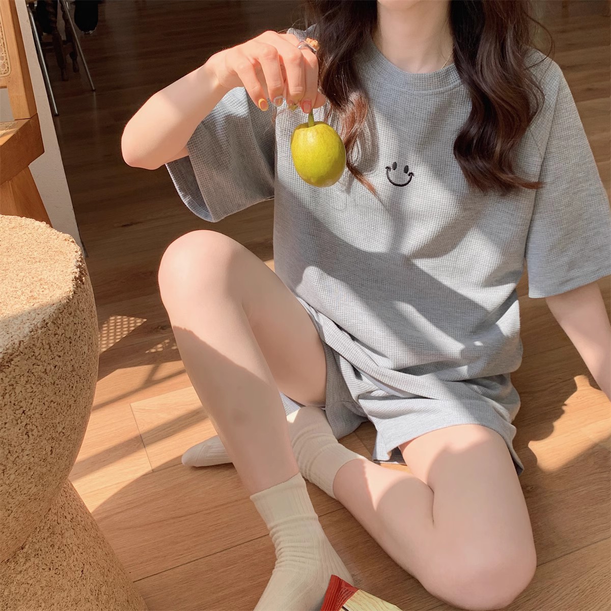 レディース 韓国風 インスタ映え ワッフル パジャマ 夏用 半袖 スマイル スポーツ ルームウェア かわいい ID615