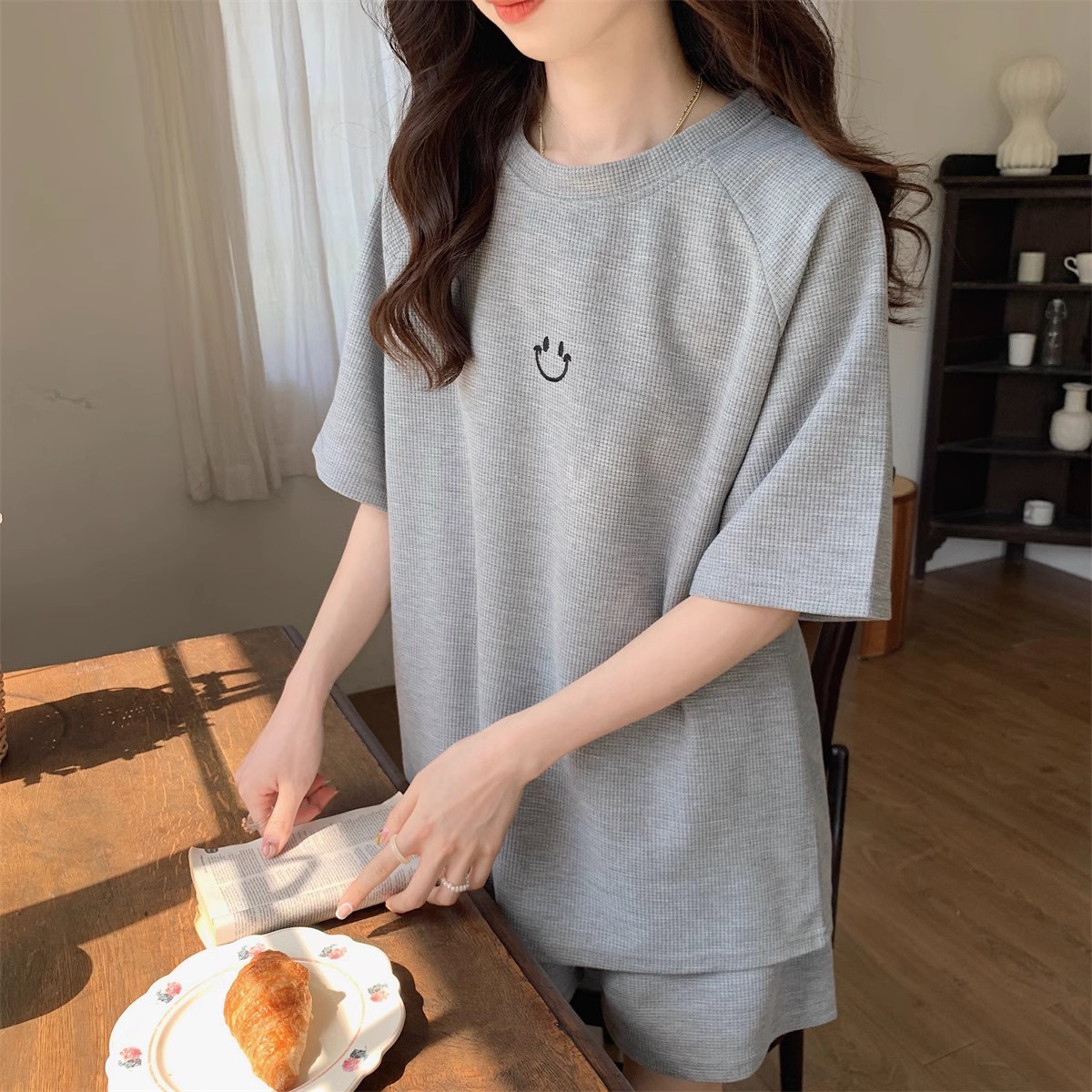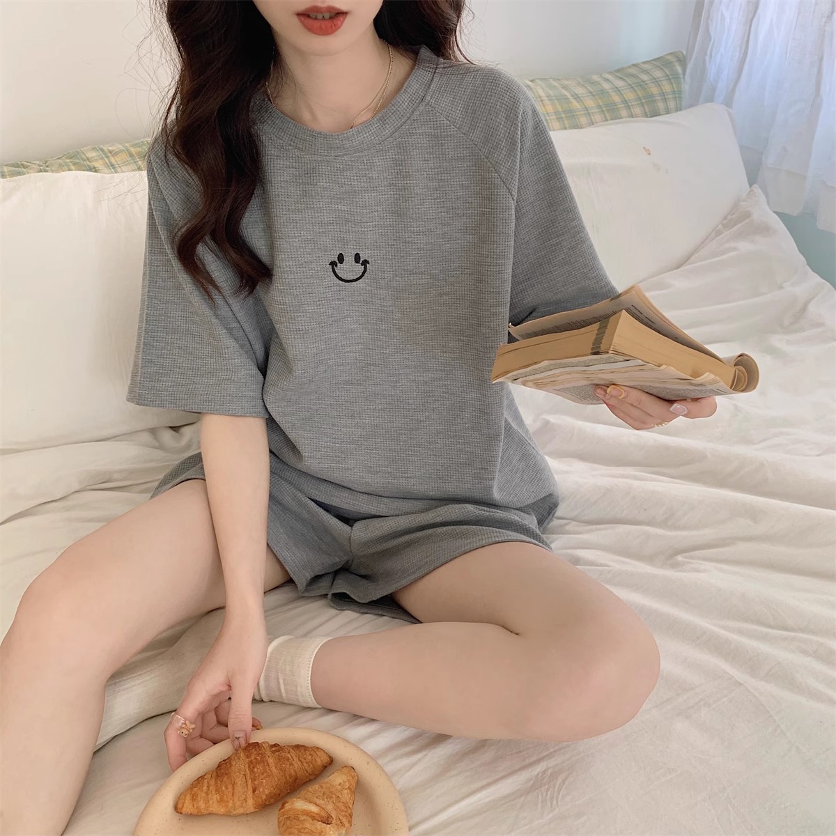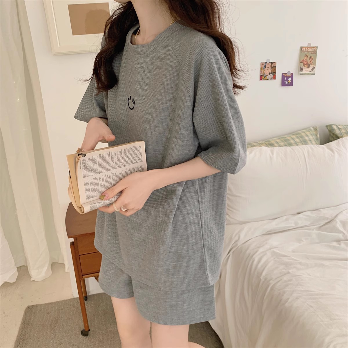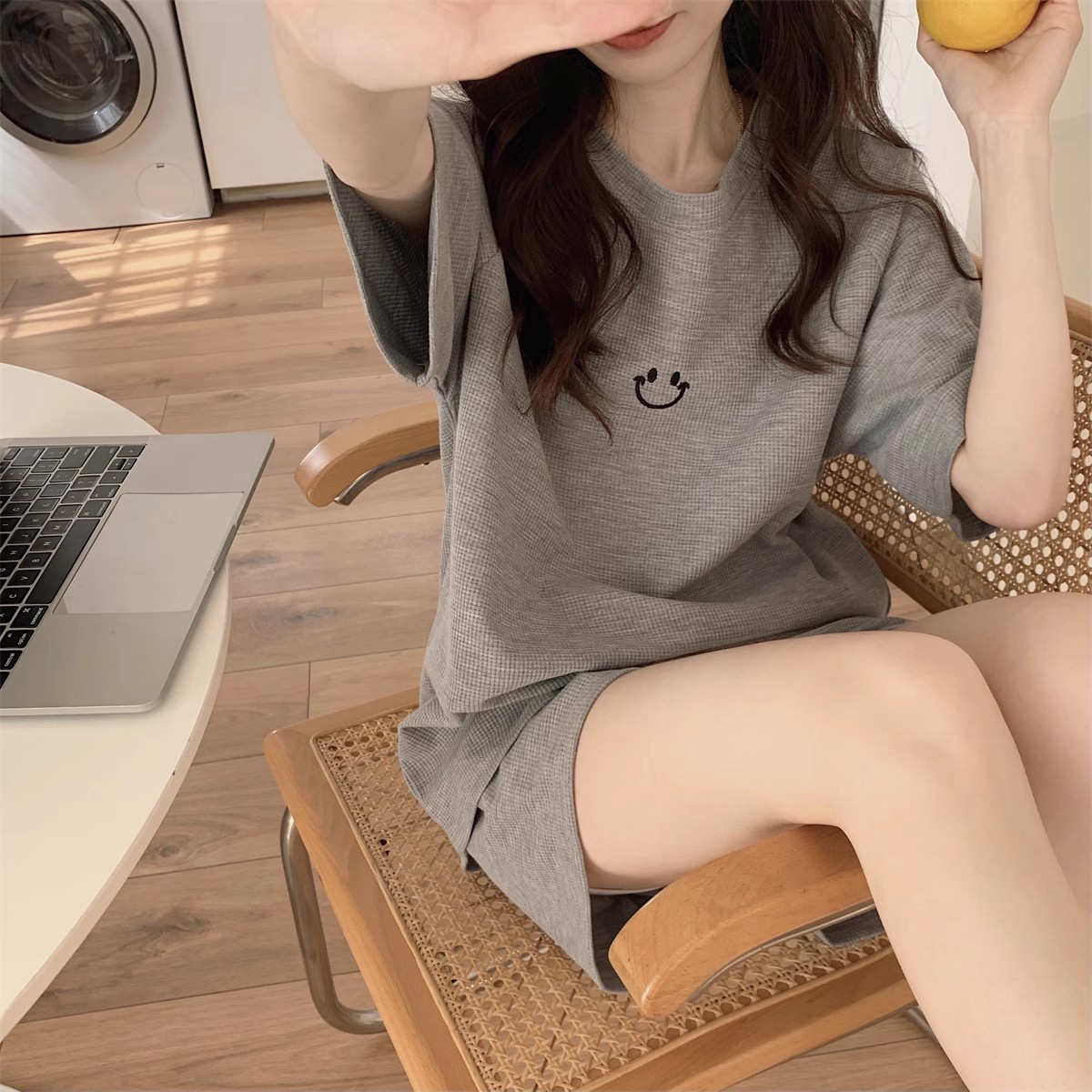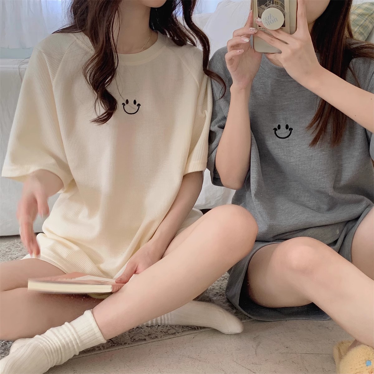レディース 韓国風 インスタ映え ワッフル パジャマ 夏用 半袖 スマイル スポーツ ルームウェア かわいい ID615