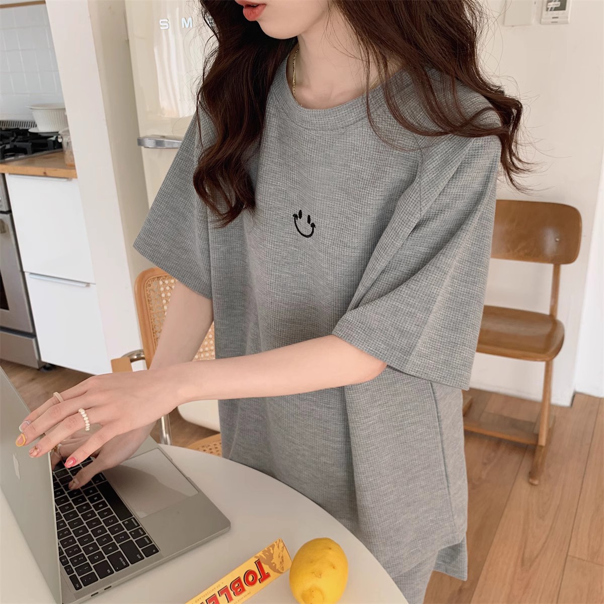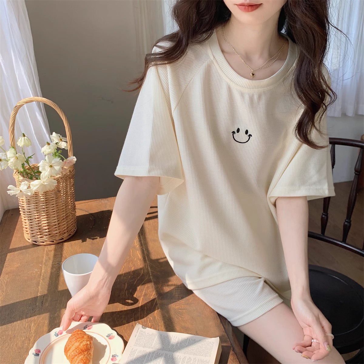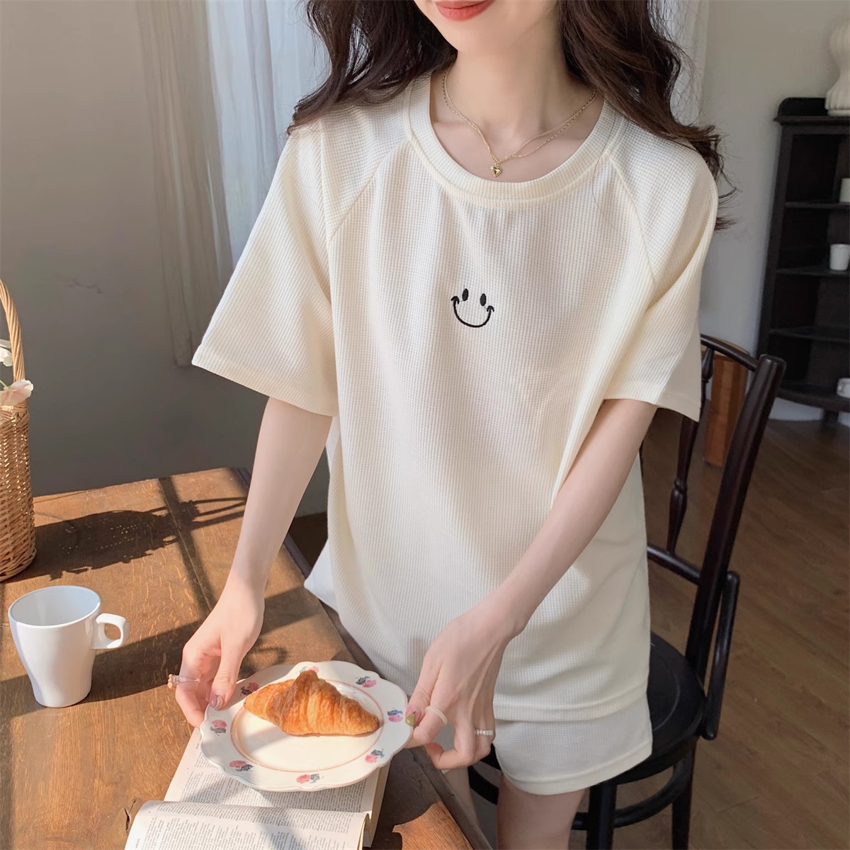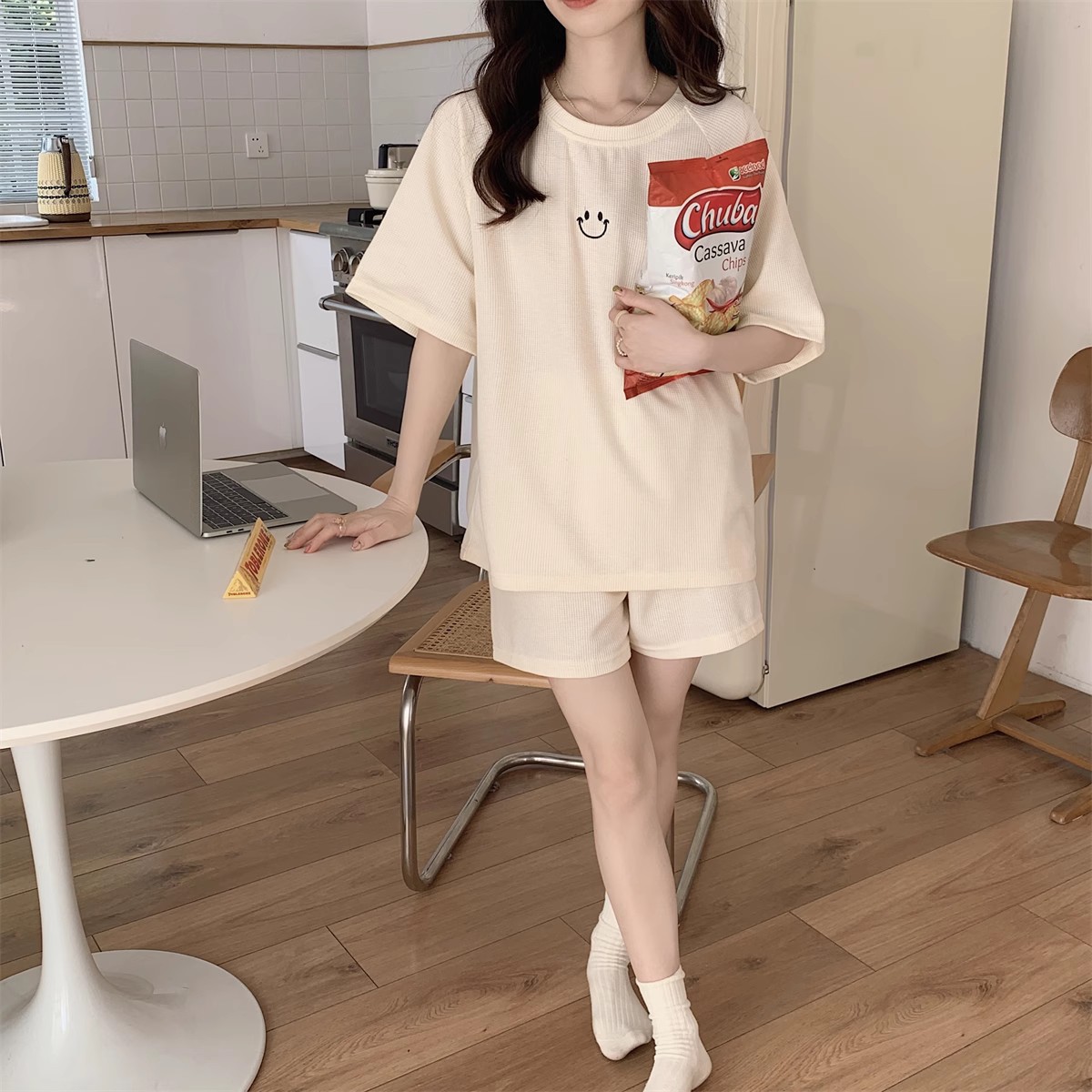 レディース 韓国風 インスタ映え ワッフル パジャマ 夏用 半袖 スマイル スポーツ ルームウェア かわいい ID615