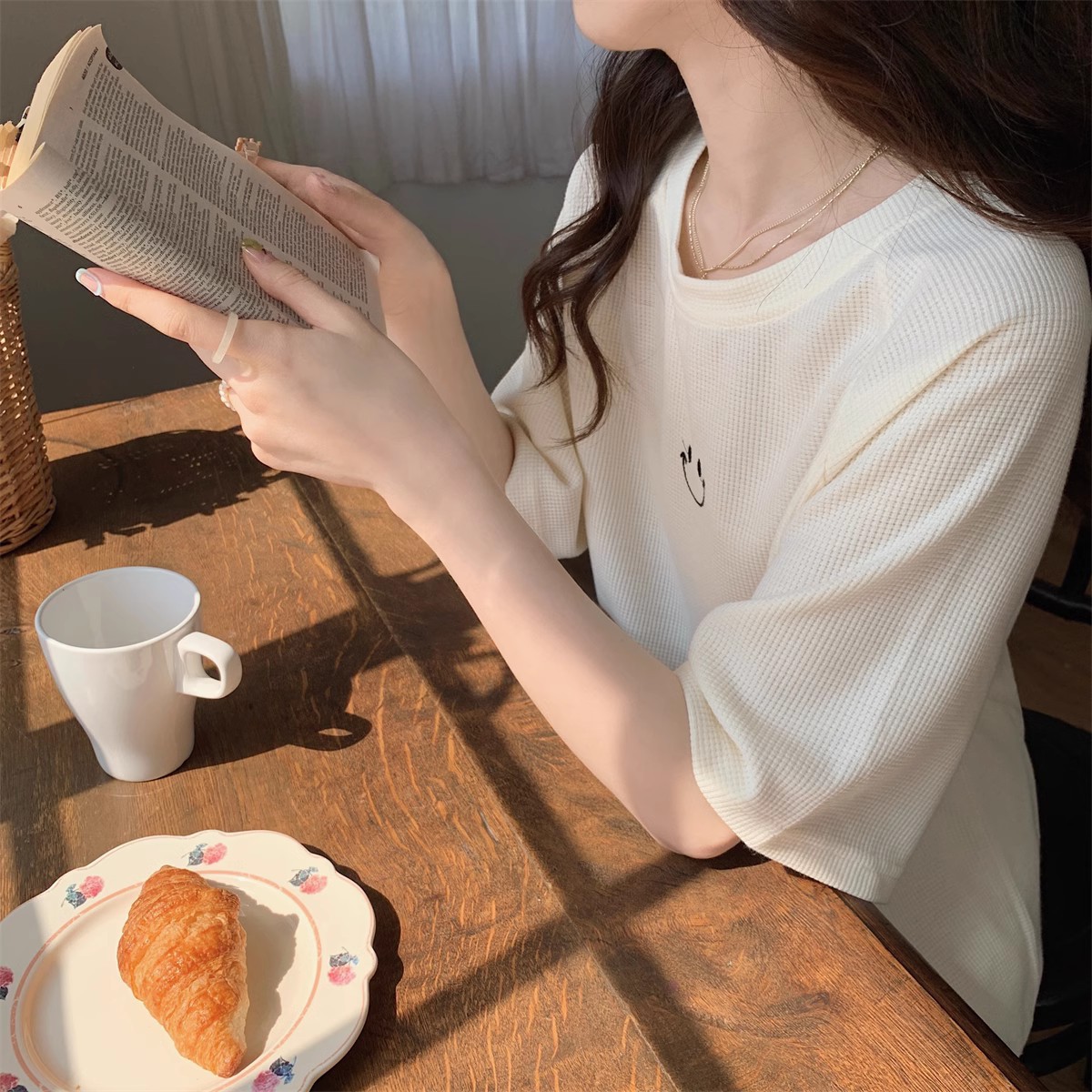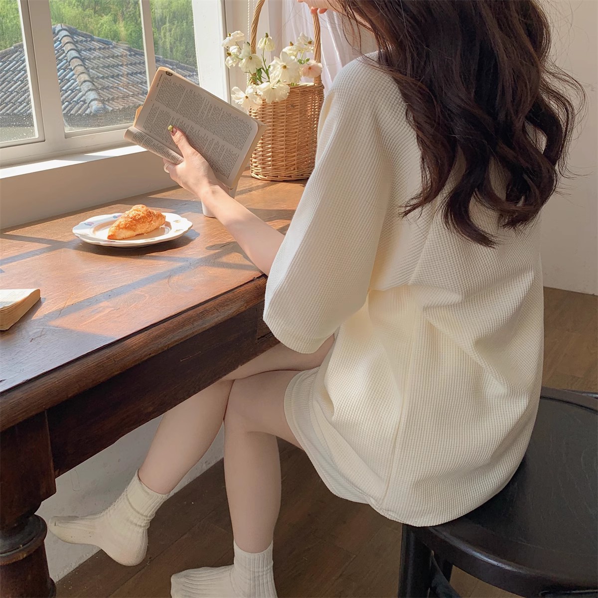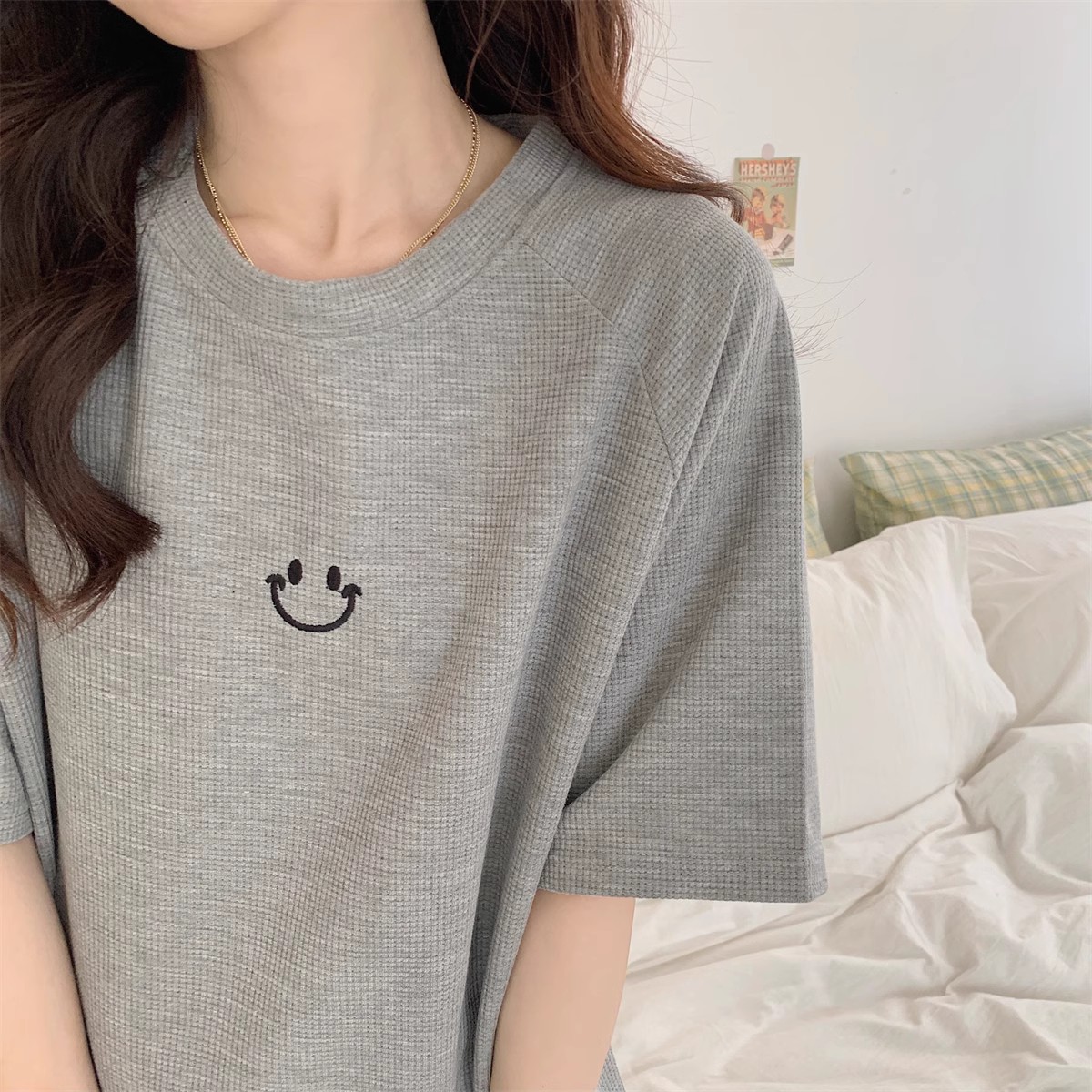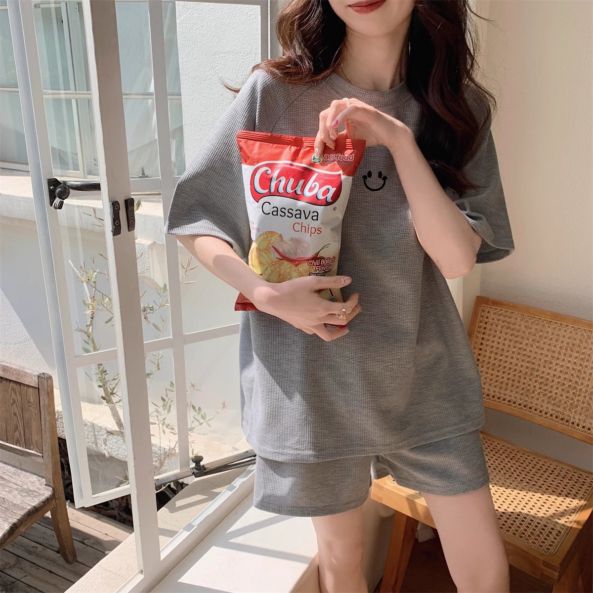 レディース 韓国風 インスタ映え ワッフル パジャマ 夏用 半袖 スマイル スポーツ ルームウェア かわいい ID615