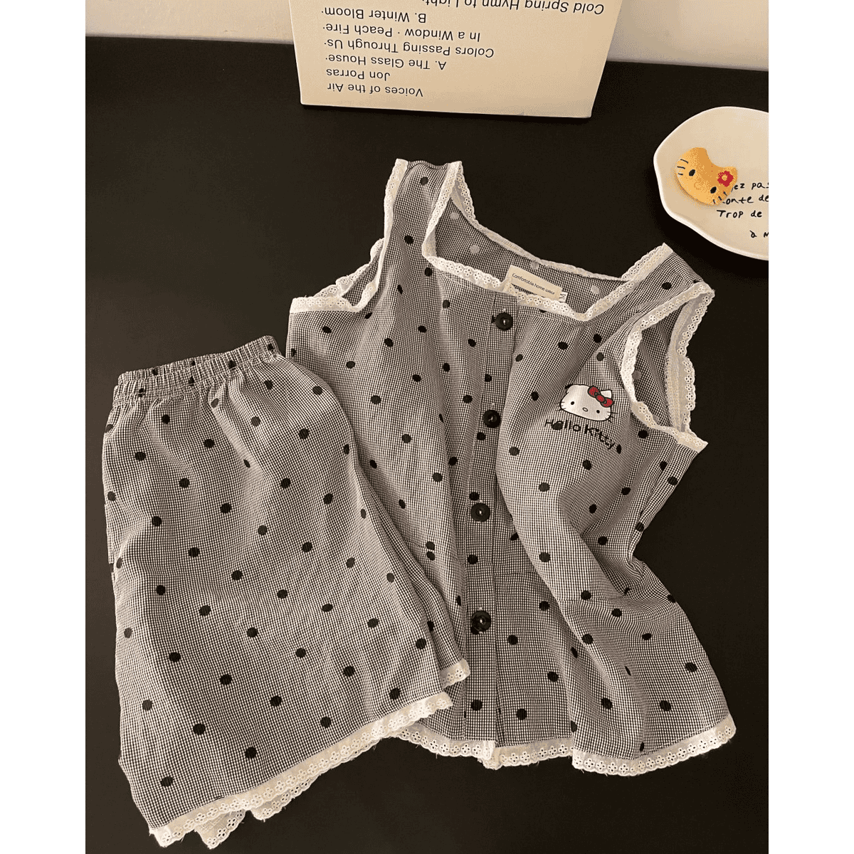 レディース かわいい 猫柄 ネコ デザイン 胸パッド付き 可愛い 快適 透湿性ある ドット柄 キャミソール ショートパンツ リラックス 家居服 セット 外出可能 ID619