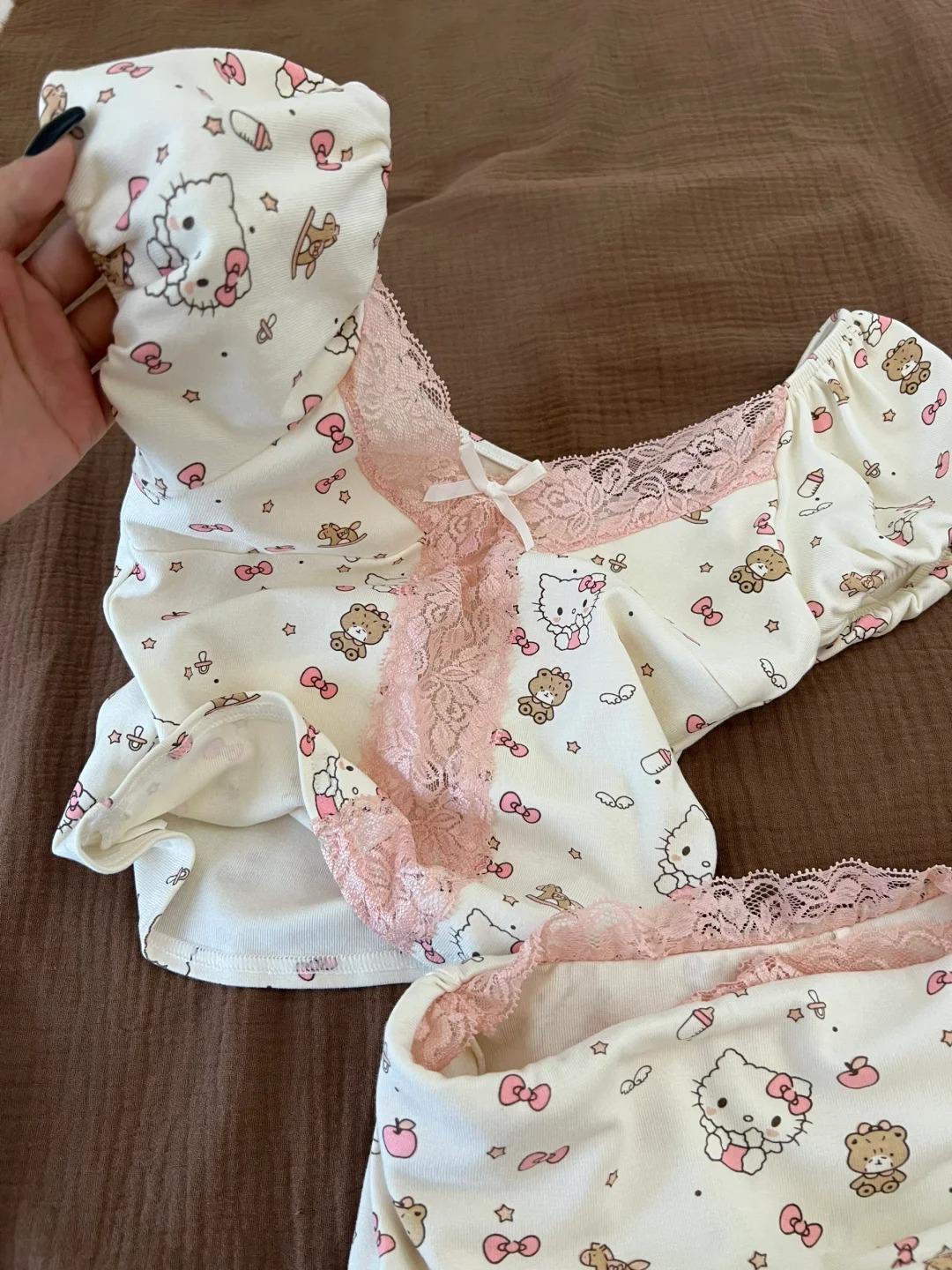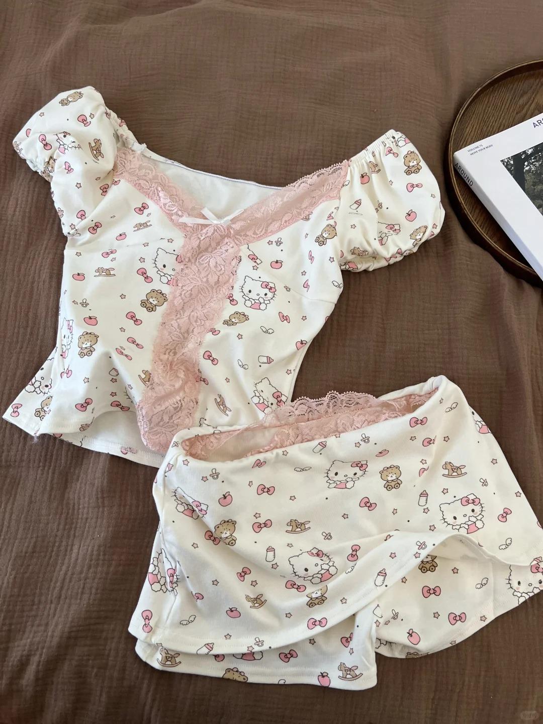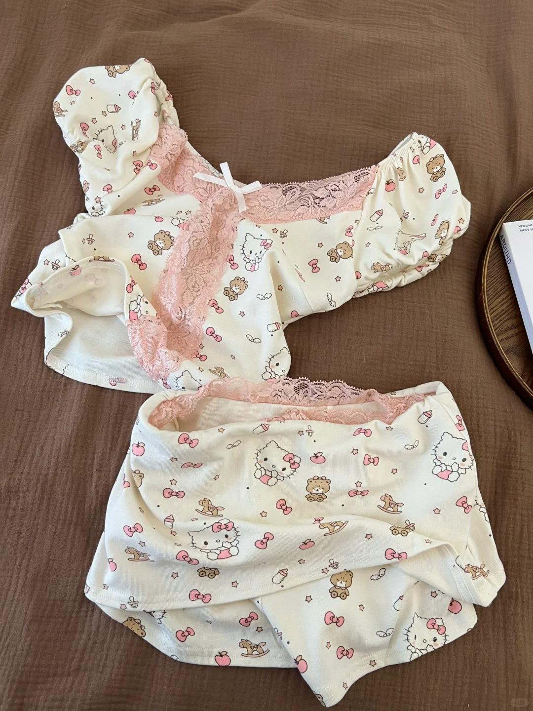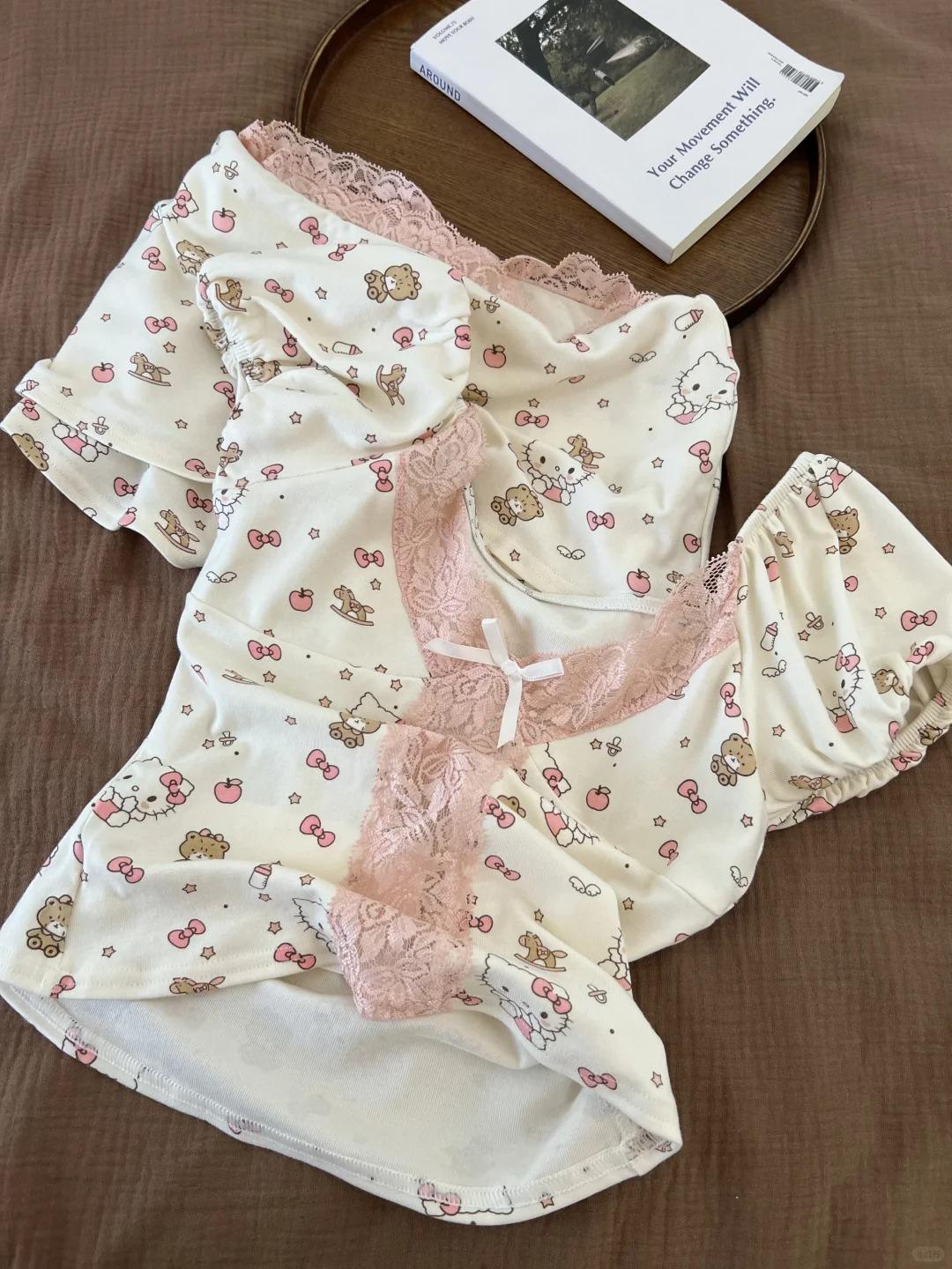 韓国風 インスタ映え かわいい パジャマ レディース 夏 半袖 レース 切り替え バブルスリーブ セクシー 可愛い ID622