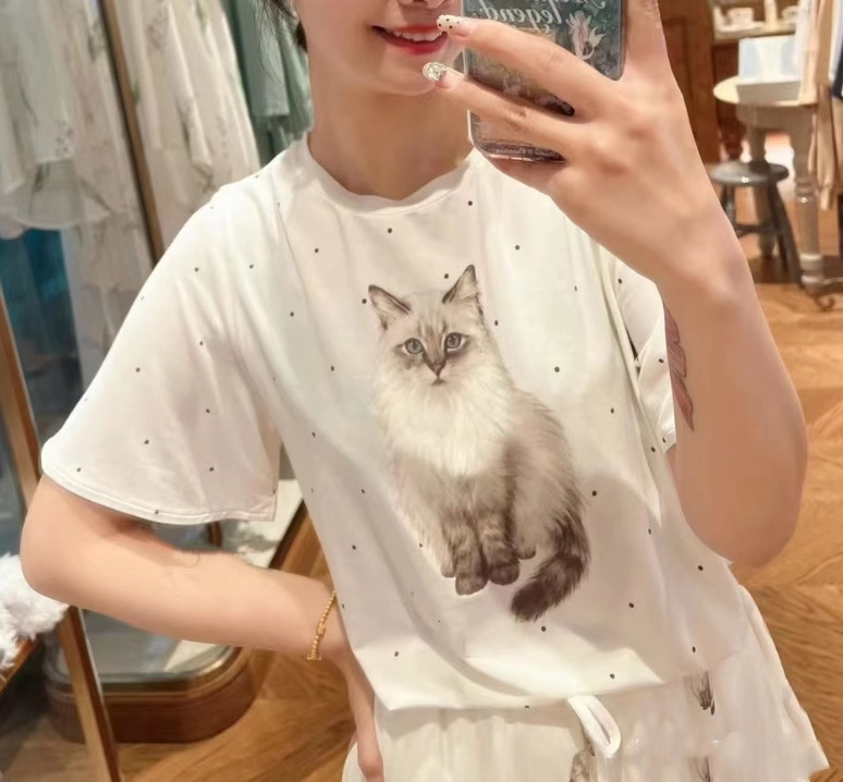 猫 パジャマセット レディース 春夏 半袖 ショートパンツ 薄手 カジュアル 快適 ルームウェア 外出可 かわいい ID636