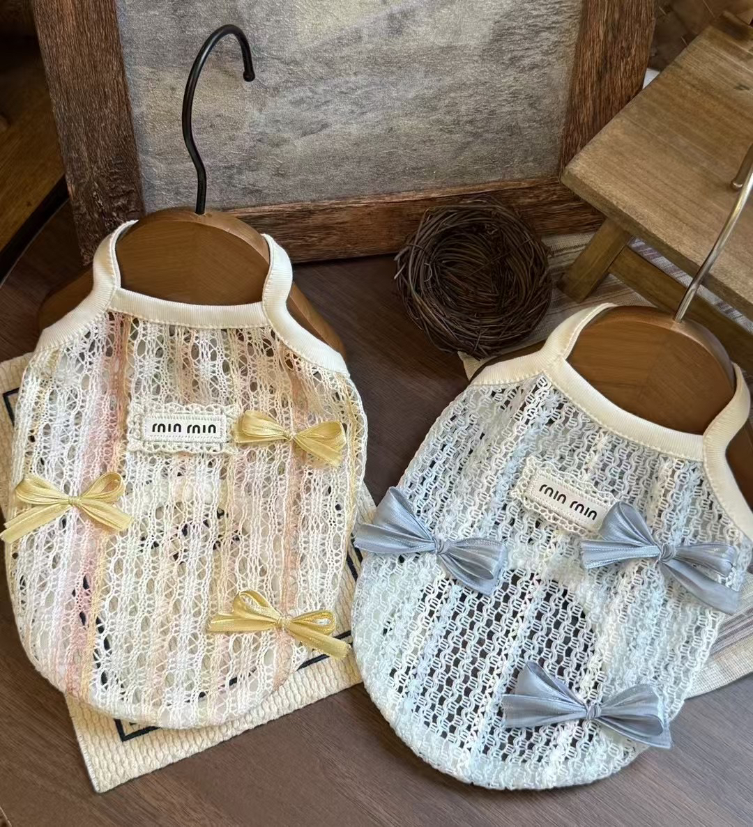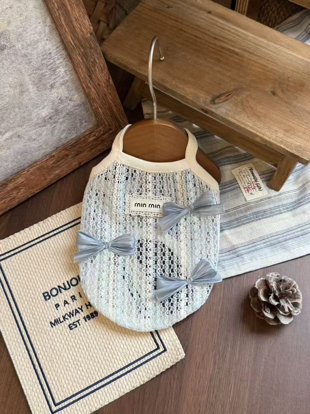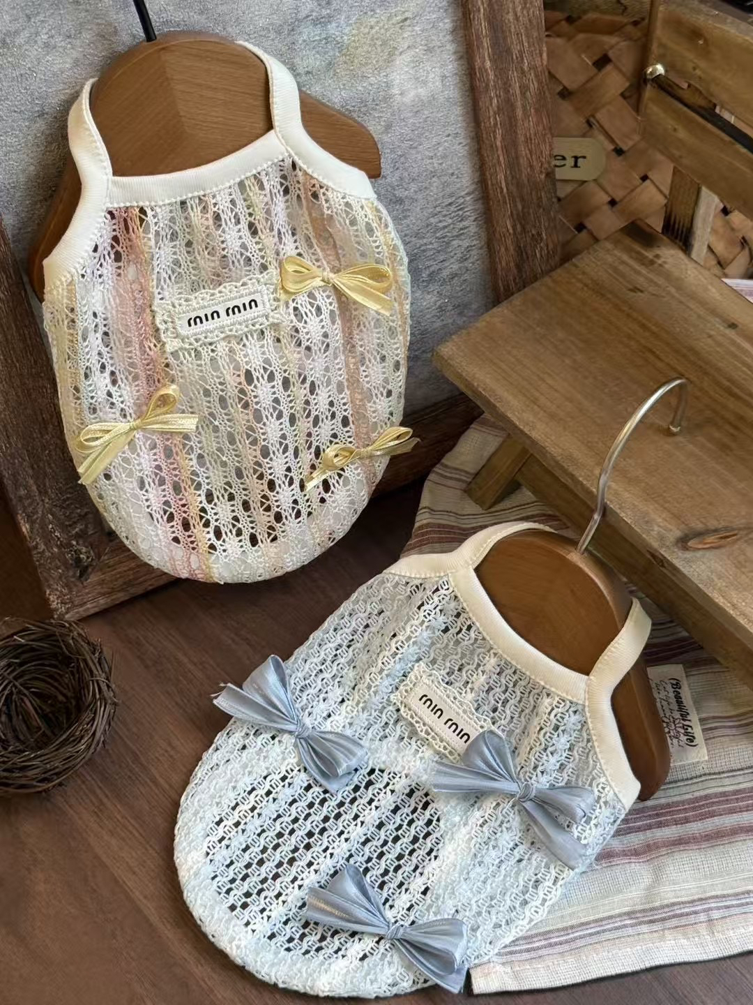 夏用 薄手 レース 透かし デザイン 猫 犬 ペット タンクトップ ベスト クール ウェア エアコン ルーム 室内 着 ID727