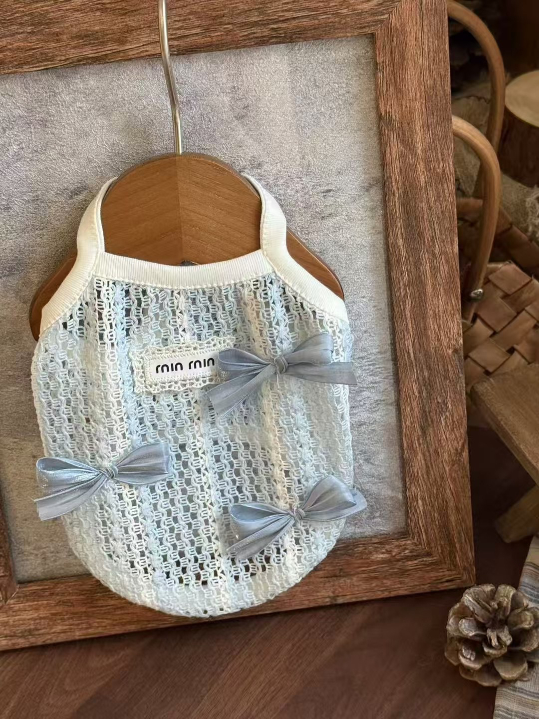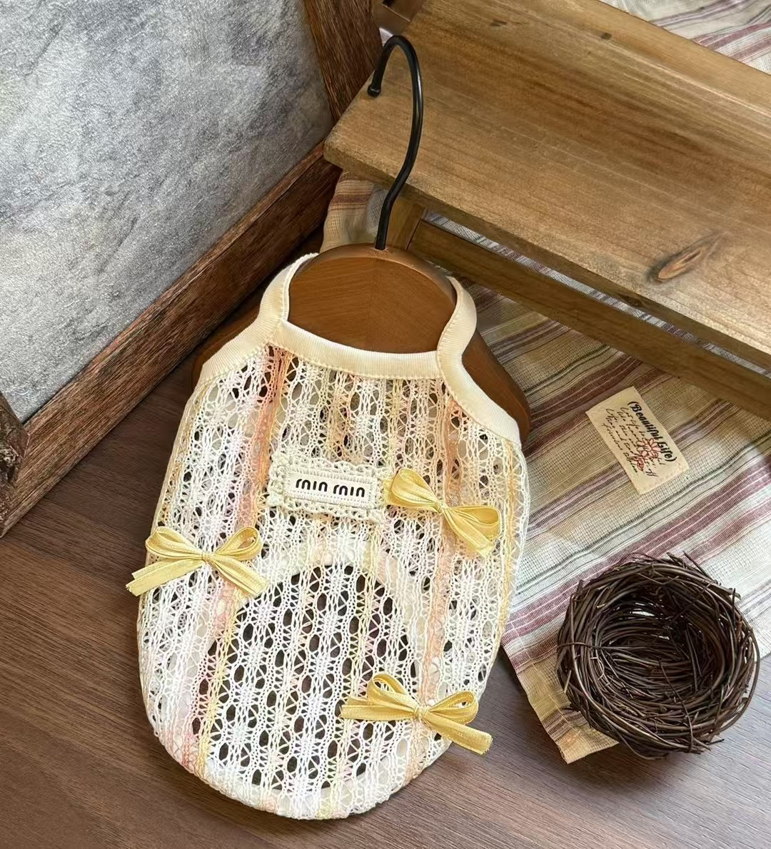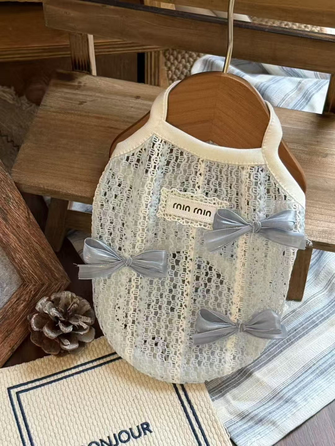 夏用 薄手 レース 透かし デザイン 猫 犬 ペット タンクトップ ベスト クール ウェア エアコン ルーム 室内 着 ID727
