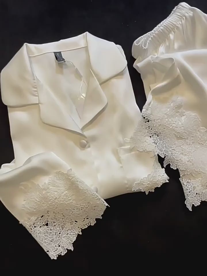 アイスシルク 高級 シルク 風 パジャマ 4色 レース カット フリル 春 秋 新作 長袖 ロングパンツ 薄手 ルームウェア 2点 セット ID741