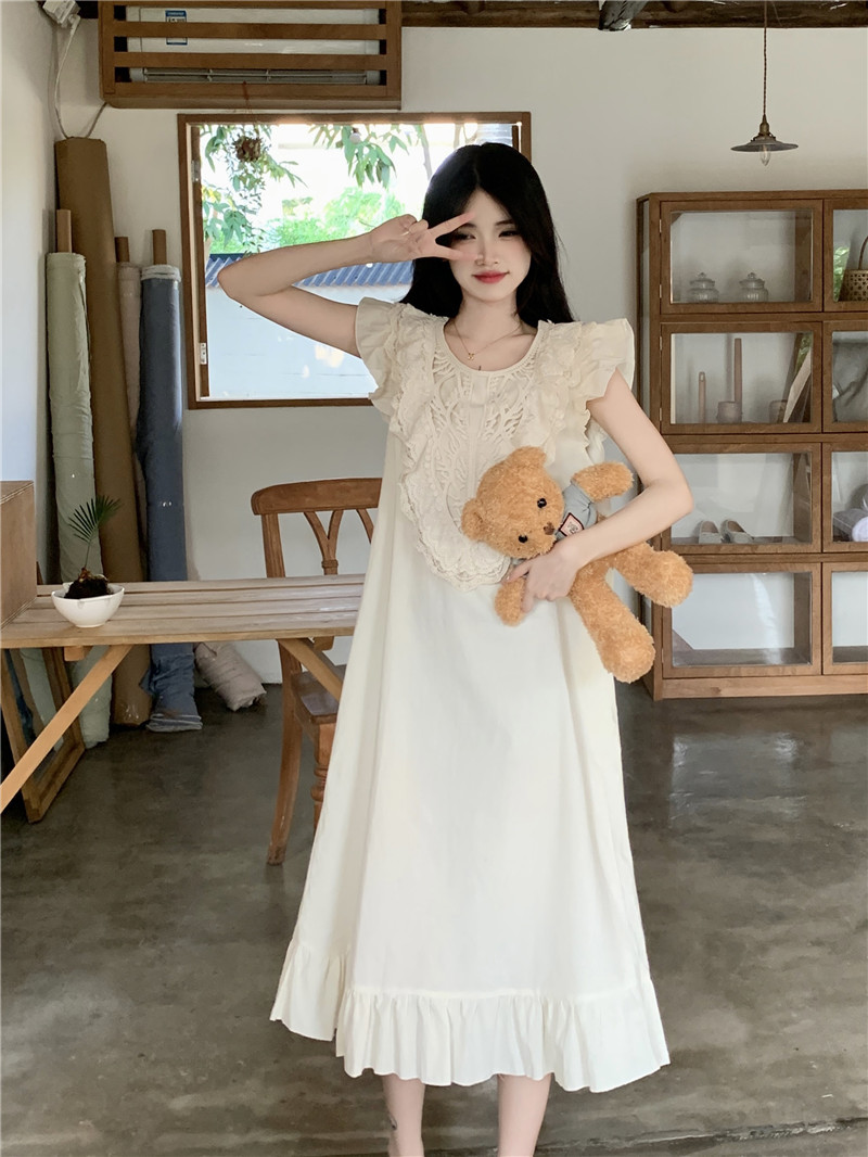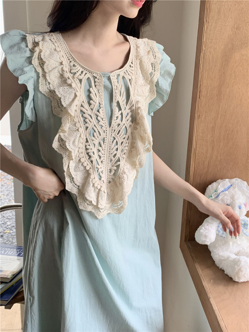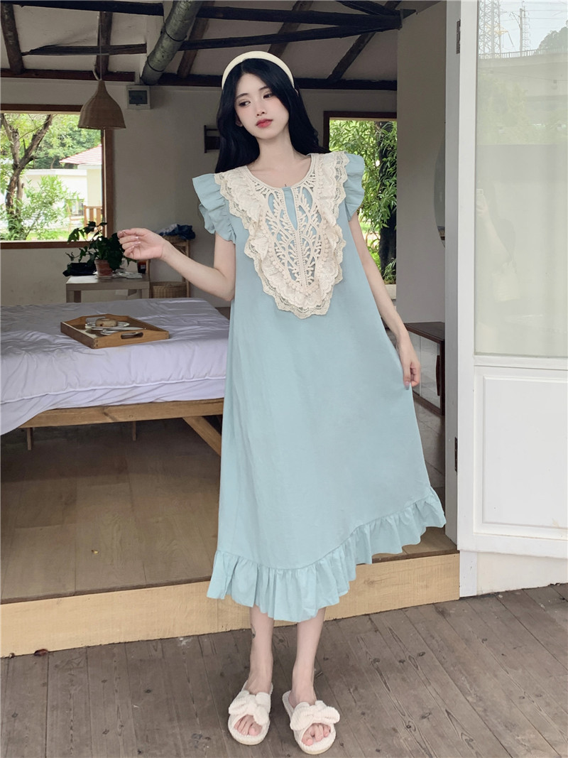 韓国風 インスタ映え レディース 夏 パジャマ ゆったり 快適 甘い 宮廷風 高級 レース ルームウェア ナイトドレス 上品 透け感 素材 通気性 抜群 ID748