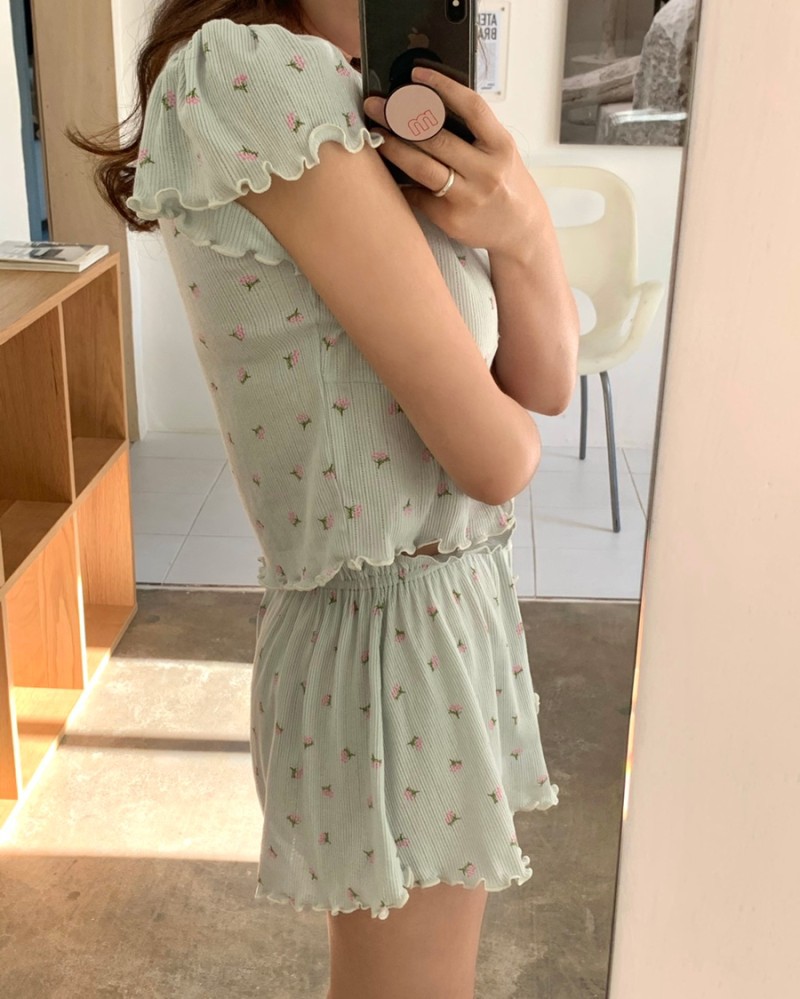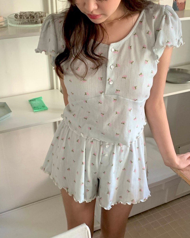 パジャマ ルームウェア セット 花柄 かわいい 通気性 快適 柔らかい 韓国風 インスタ レディース 夏 新作 甘い 半袖 ショート丈 セット ID754