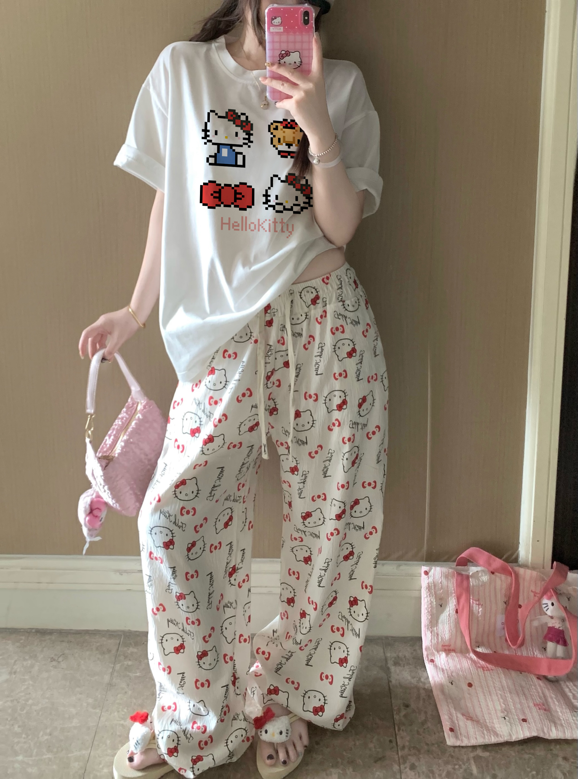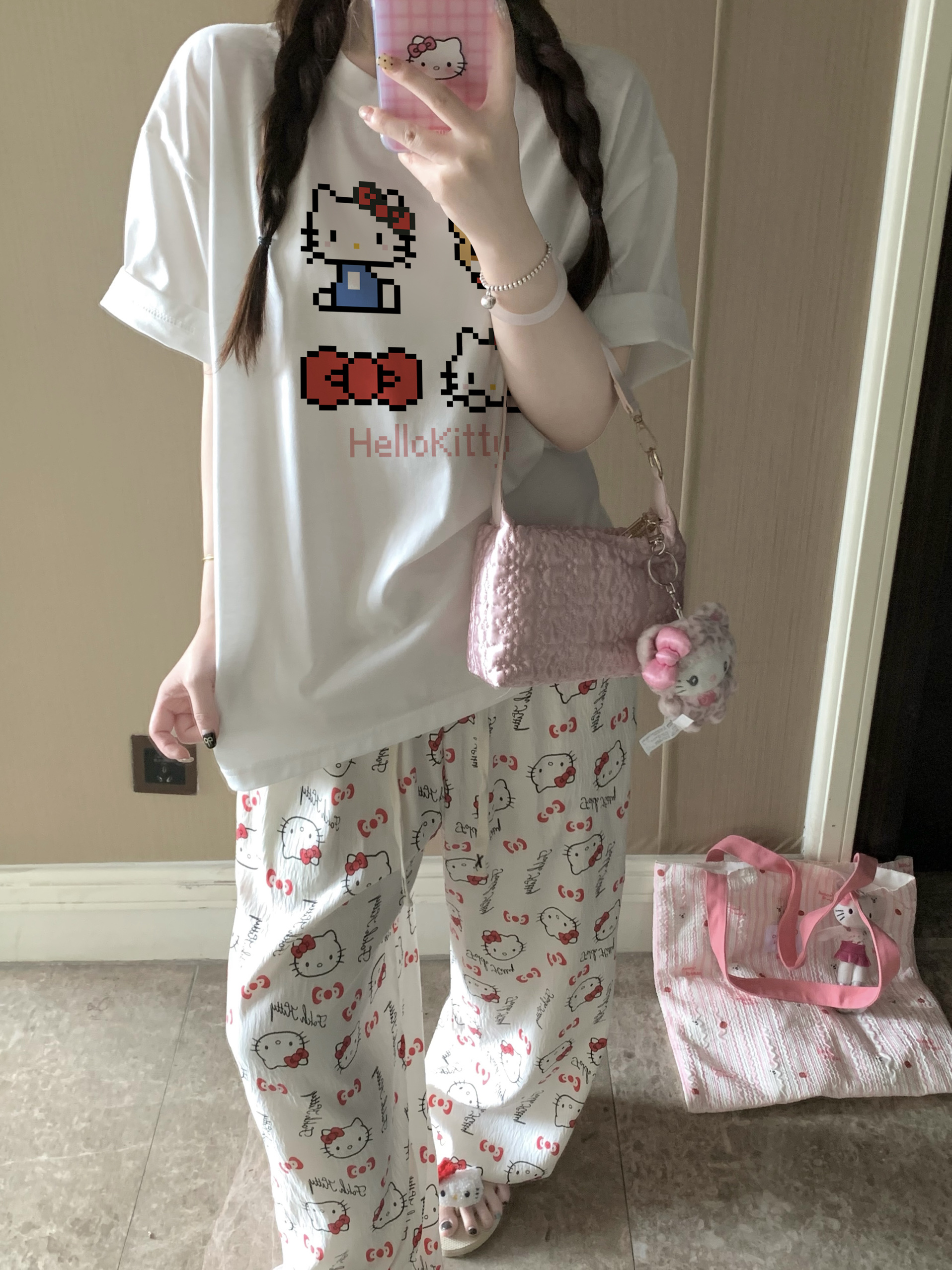 タイムセール開催中! パジャマ レディース 夏 新作 半袖 長ズボン 綿 セット カートゥーン 寝巻き 上下セット 大人スイート ハローキティ ルーズ ホームウェア ID766
