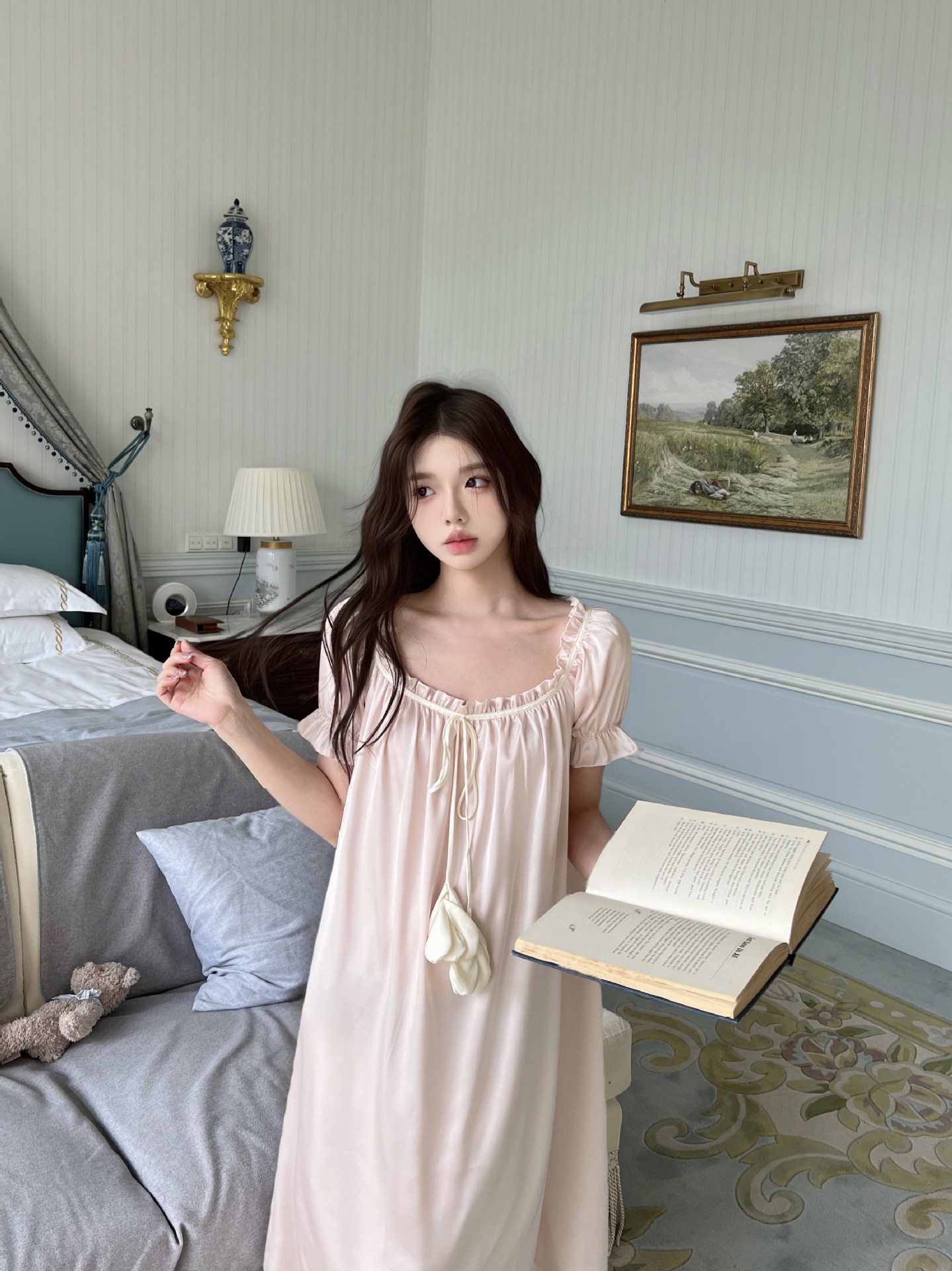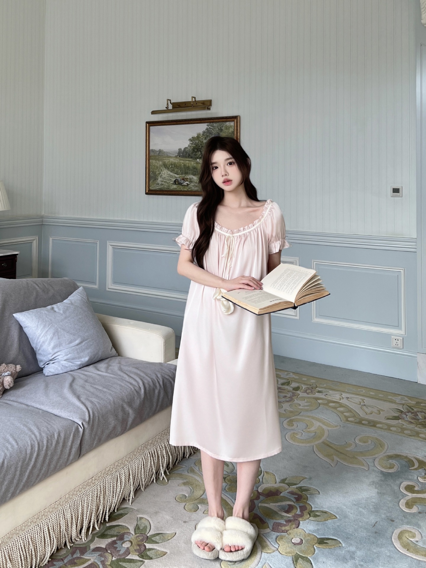 ナイトドレス レディース 夏 新作 アイスシルク 半袖 薄手 プリンセス風 チューリップカラー 無地 ホームウェア ルームウェア 部屋着 涼感 通気性抜群 洗濯可能 ID852