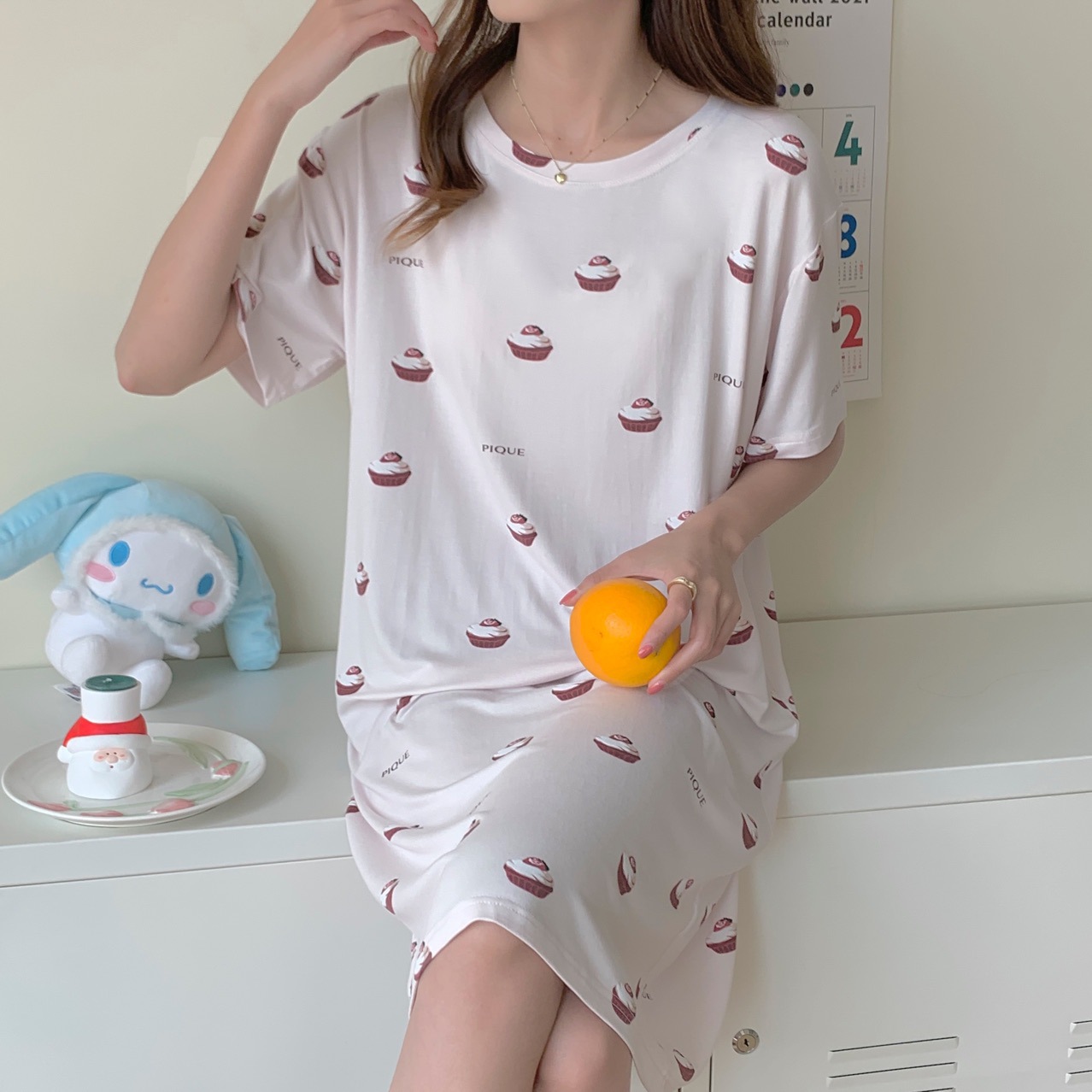ナイトドレス レディース 春 夏 新作 和風 モダール ケーキモチーフ 半袖 ホームウェア ルームウェア ID860