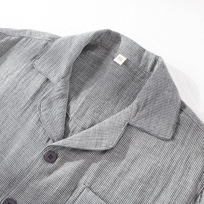 パジャマ メンズ 夏用 ダブル色織り 綿100% 半袖 長ズボン プラスサイズ 父の日ギフト ルームウェアセット 外着可能 カップル用 ID954