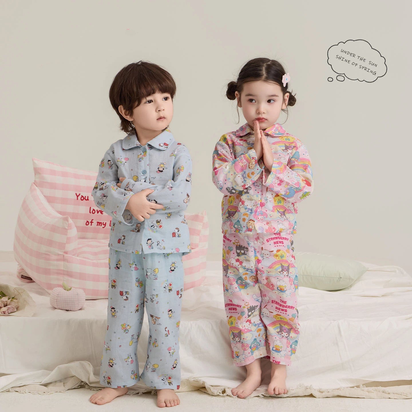 多色展開 キッズ パジャマ 子供 男女兼用 ユニセックス 男の子 女の子 春 夏 薄手 ギャザー やわらか 肌触り インスタ映え おしゃれ 可愛い オシャレ カジュアル ルームウェア 部屋着 セットアップ 着心地 プレゼント ギフト ID4241