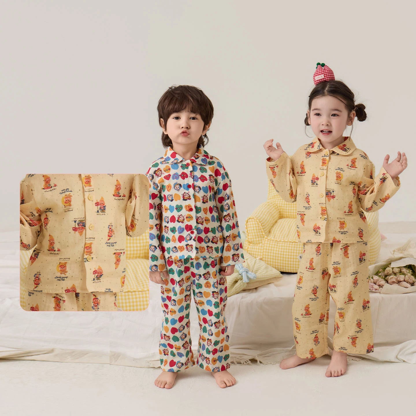 キッズ パジャマ 子供 ベビー 春夏 薄手 ガーゼ ソフト 肌触り 冷房対策 クール 空调服 インスタ映え Ins風 おしゃれ かわいい キャラクター 動物柄 カジュアル ルームウェア 部屋着 セットアップ 男の子 女の子 ギフト ID4239