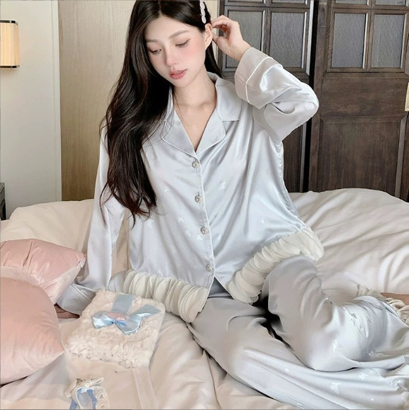 部屋着 ルームウェア シルク風 アイスシルク パジャマ 韓国ファション 普段着 春夏 長袖 カジュアル リゾート ゆったり 母の日 プレゼント