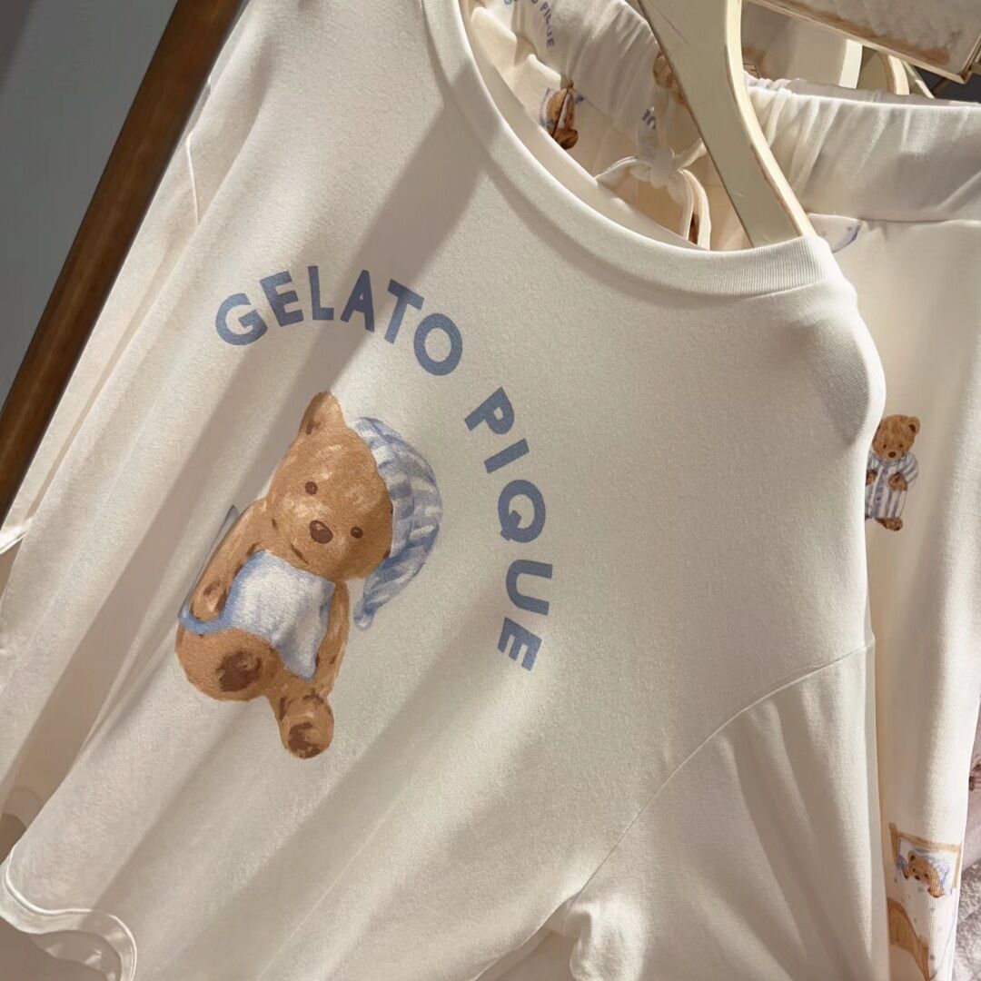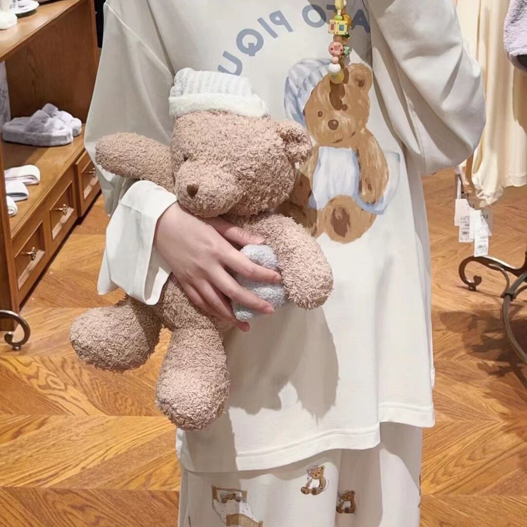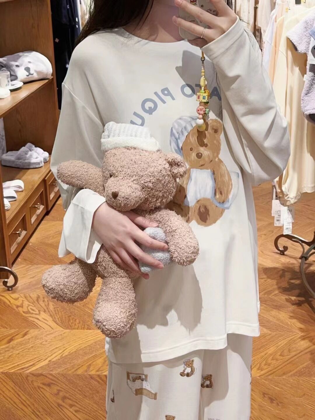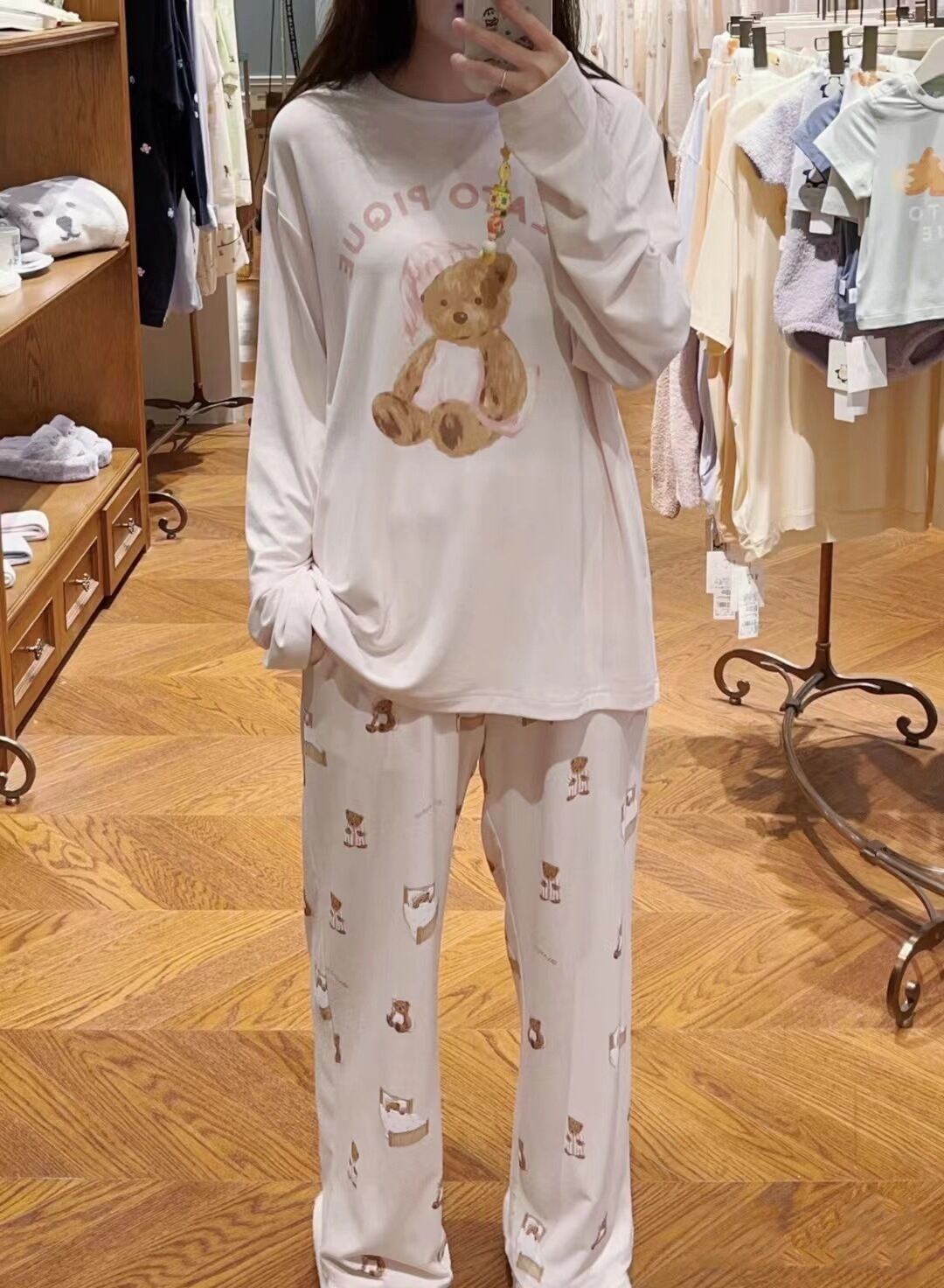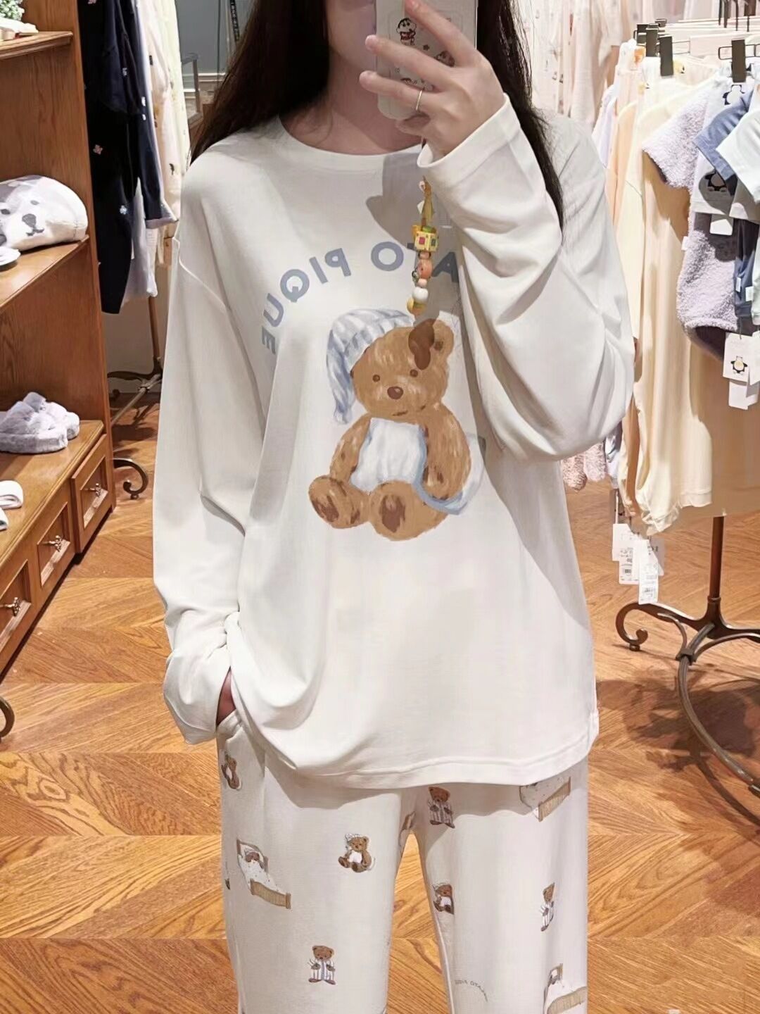 即完売注意!ルームウェア 上下セット 韓国 2色 レディース セット アプリ くま クマ おしゃれ かわいい パンツ 長袖 Tシャツ 綿 レディース ID365