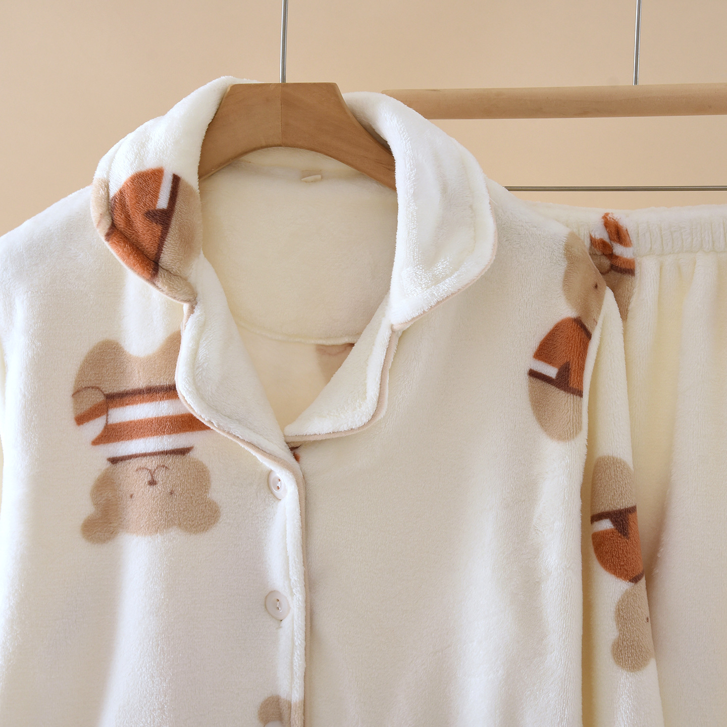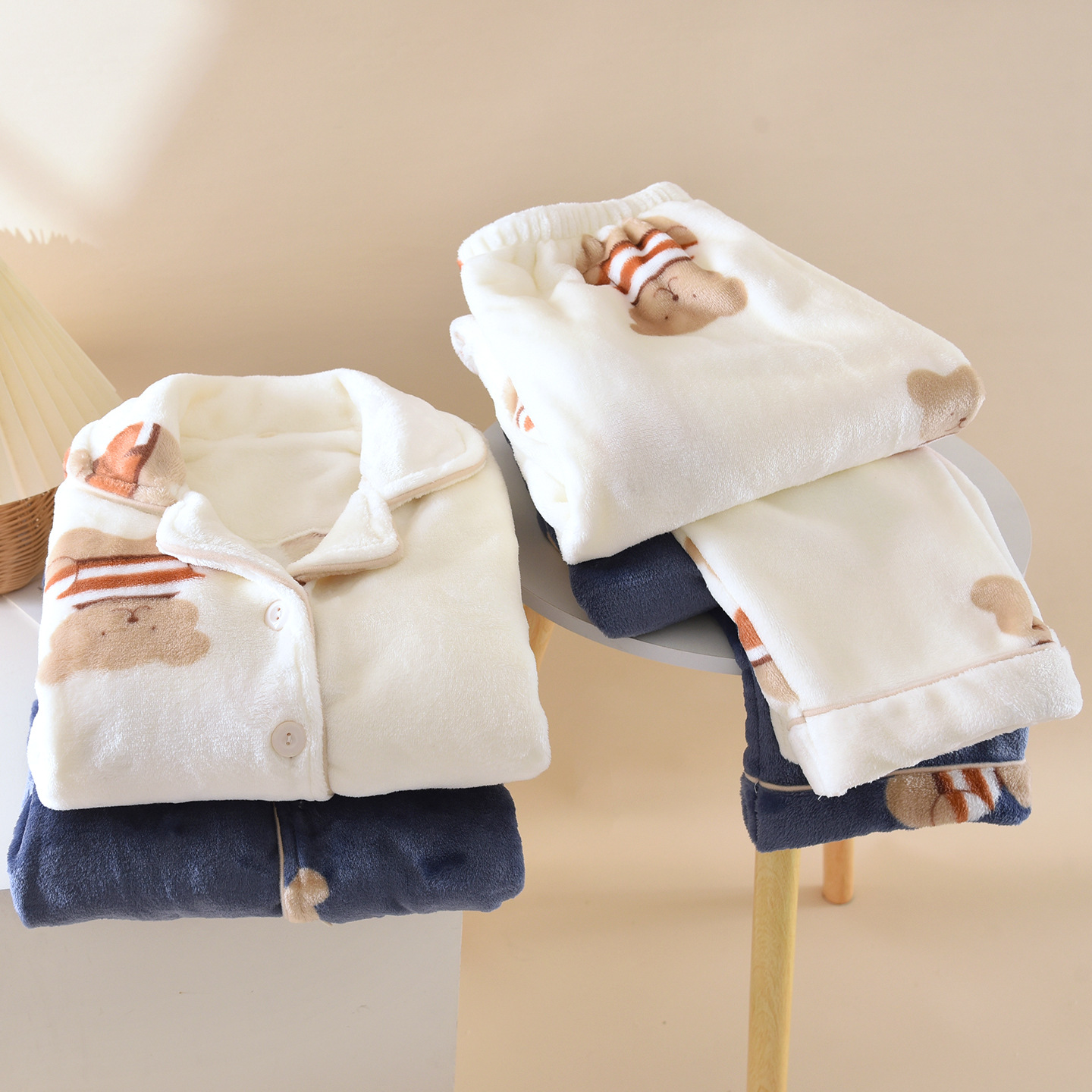 フリース パジャマ 男女 秋冬 韓国風 小熊 大きいサイズ カップル 加厚 コーラルフリース ルームウェア ID2939