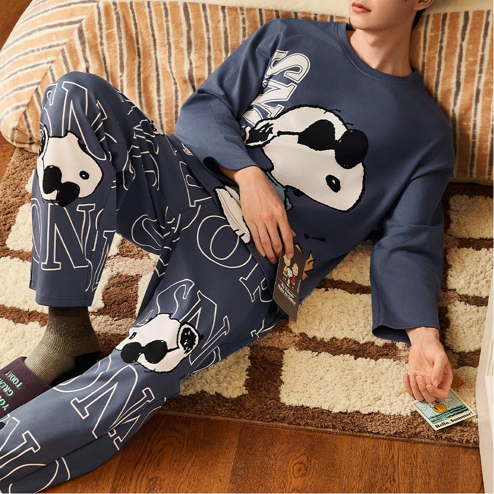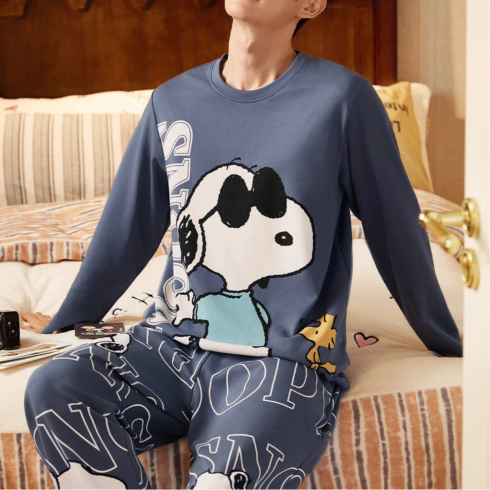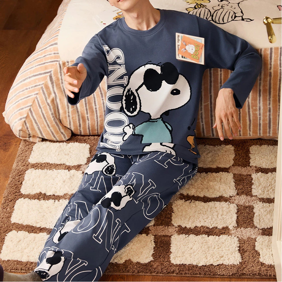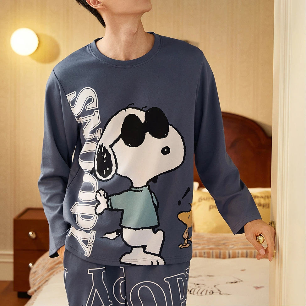 【ギフト】スヌーピー パジャマ メンズ 春 長袖 柔らか 肌触り かわいい キャラクター カジュアル 青少年 ジュニア 男子 中学生 高校生 部屋着 ルームウェア セットアップ おしゃれ リラックス プレゼント ギフト ID4242