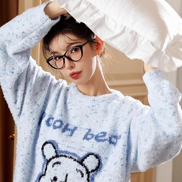 ふわふわ ハート 小熊 ふわっと パジャマ レディース 秋冬 加厚 甘い 可愛い サンゴフリース ルームウェア ジャパンスタイル ID2756