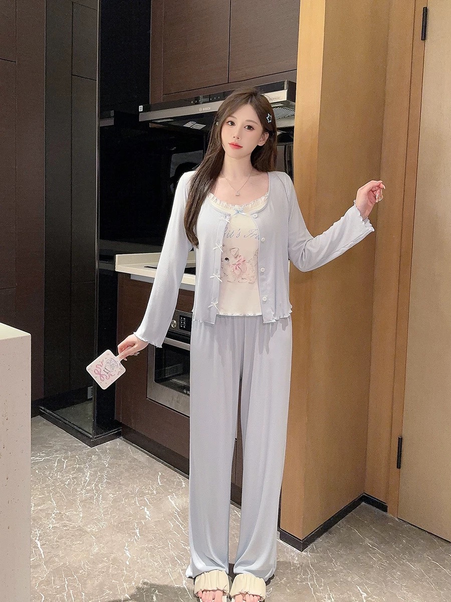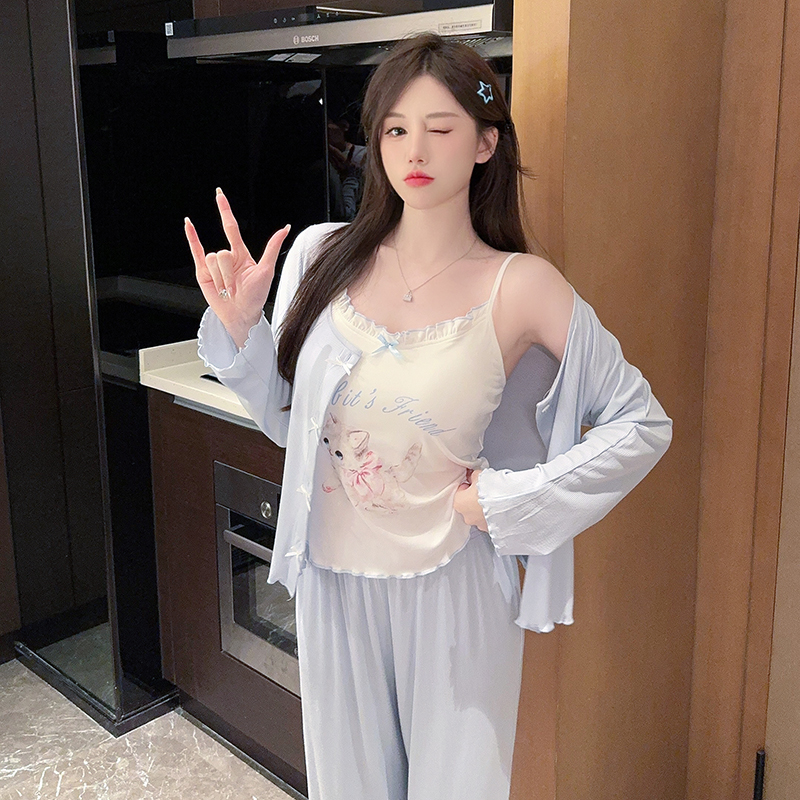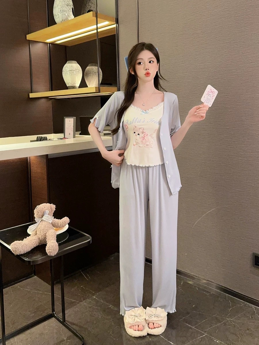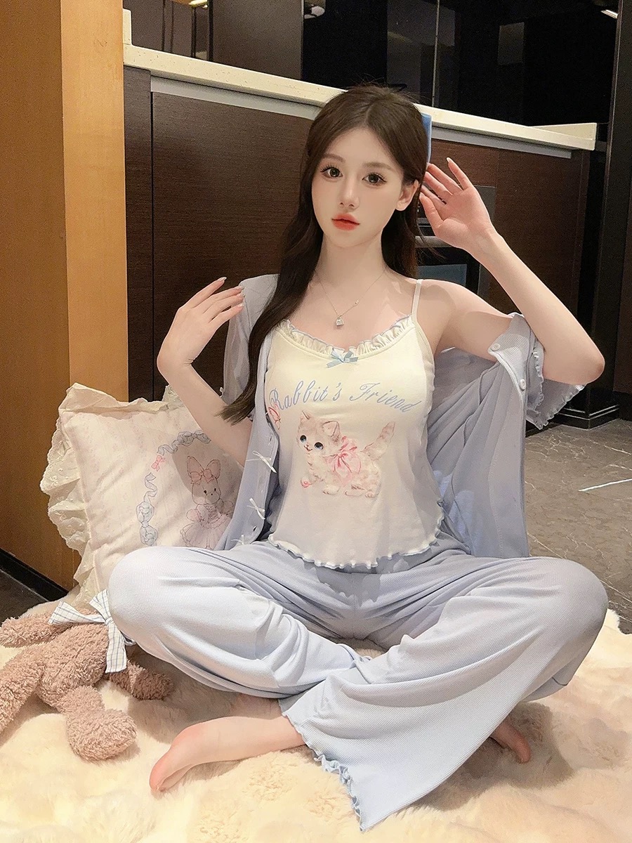 特別セール!ルームウェア セット3点セット 春夏 レディース 部屋着 キャミソール カップ付き パジャマ 薄手 ゆったり 可愛い ねこ 部屋着 ナイトウェア 寝巻き ID310