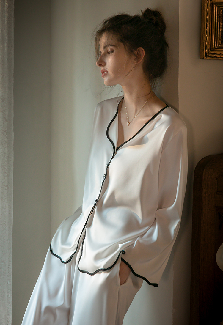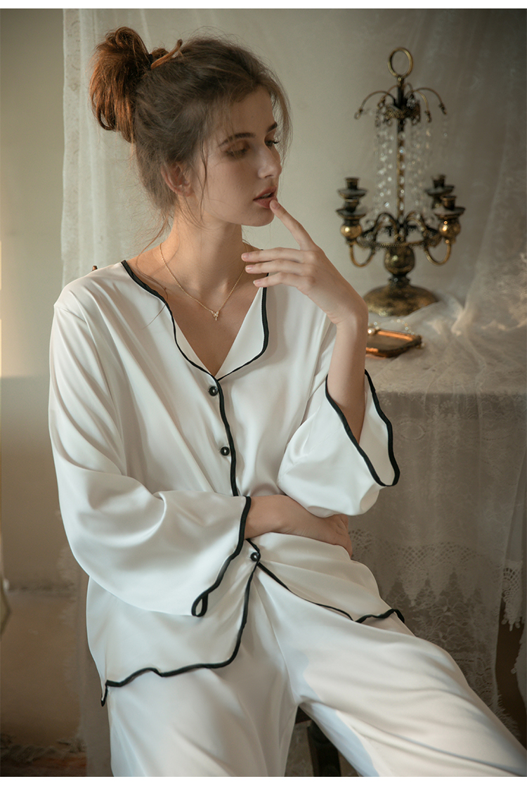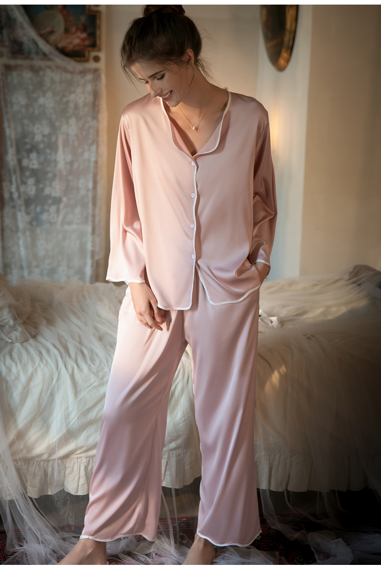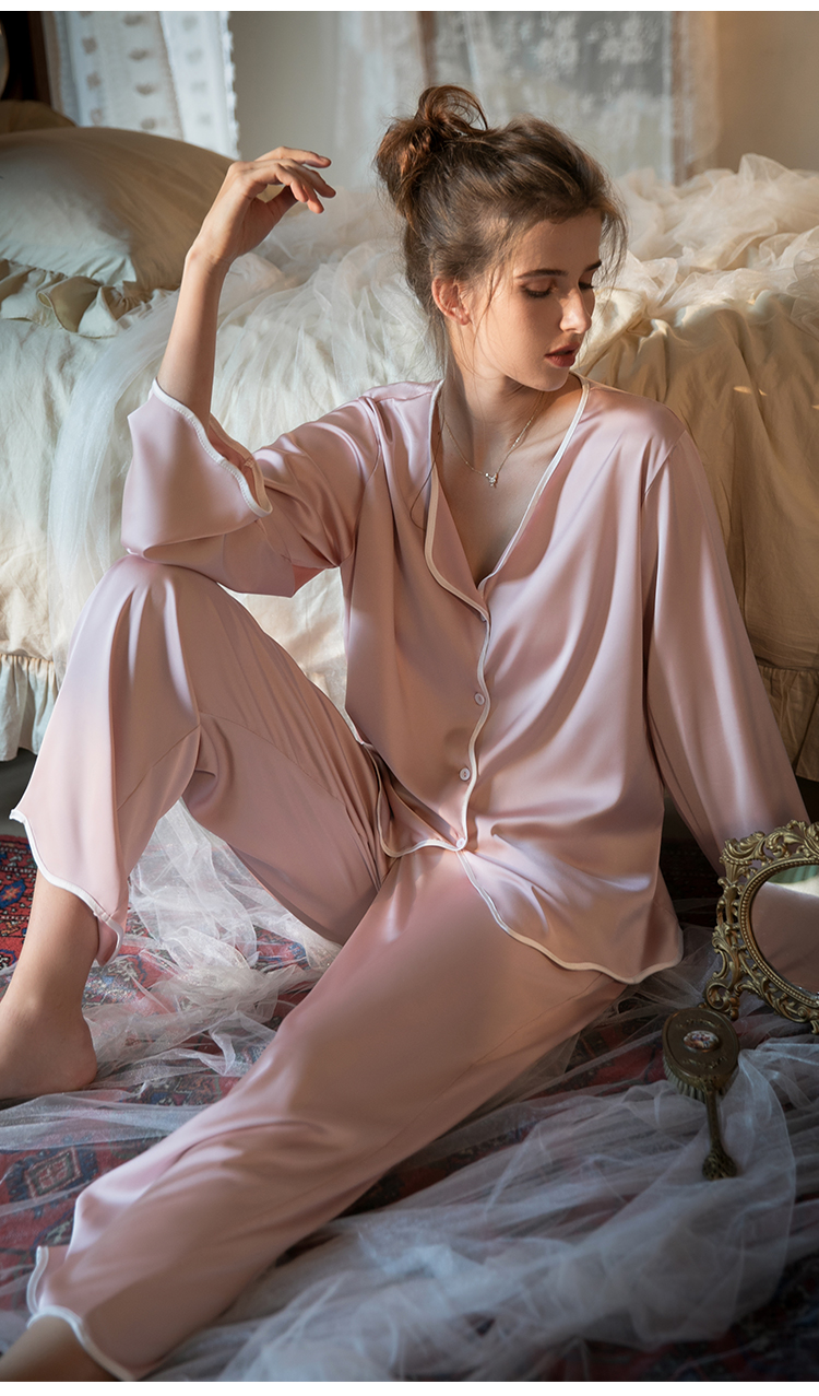 女性 ルームウェア 秋冬 無地 パジャマ セット ボタン付き 翻领 シャツ カジュアル ロングパンツ 柔らかい コート ID2770