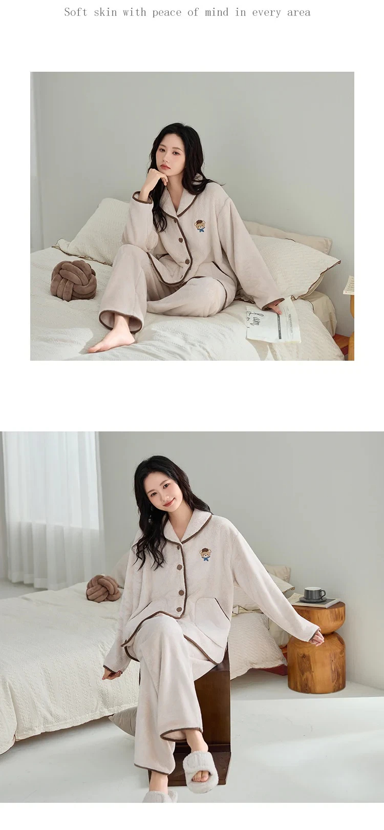 秋冬用 男女兼用 パジャマ 裏起毛 厚手 コーラルフリース 新作 フランネル カジュアル ルームウェア セット かわいい 可愛い 暖かい あったか 長袖 部屋着 ふわもこ モコモコ クリスマスプレゼント ID3570
