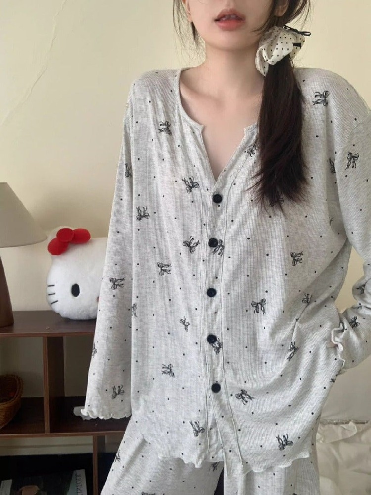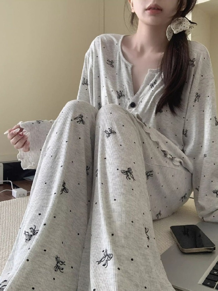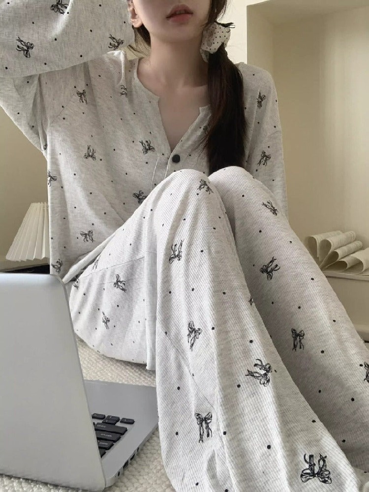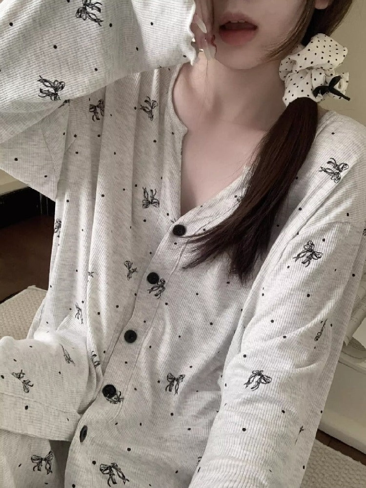 おしゃれ パジャマ セット ナイトウェア かわいい 可愛い 春秋 長袖 ルームウェア 部屋着 爽やか 2点セット かわいい 肌触りよい ID4090