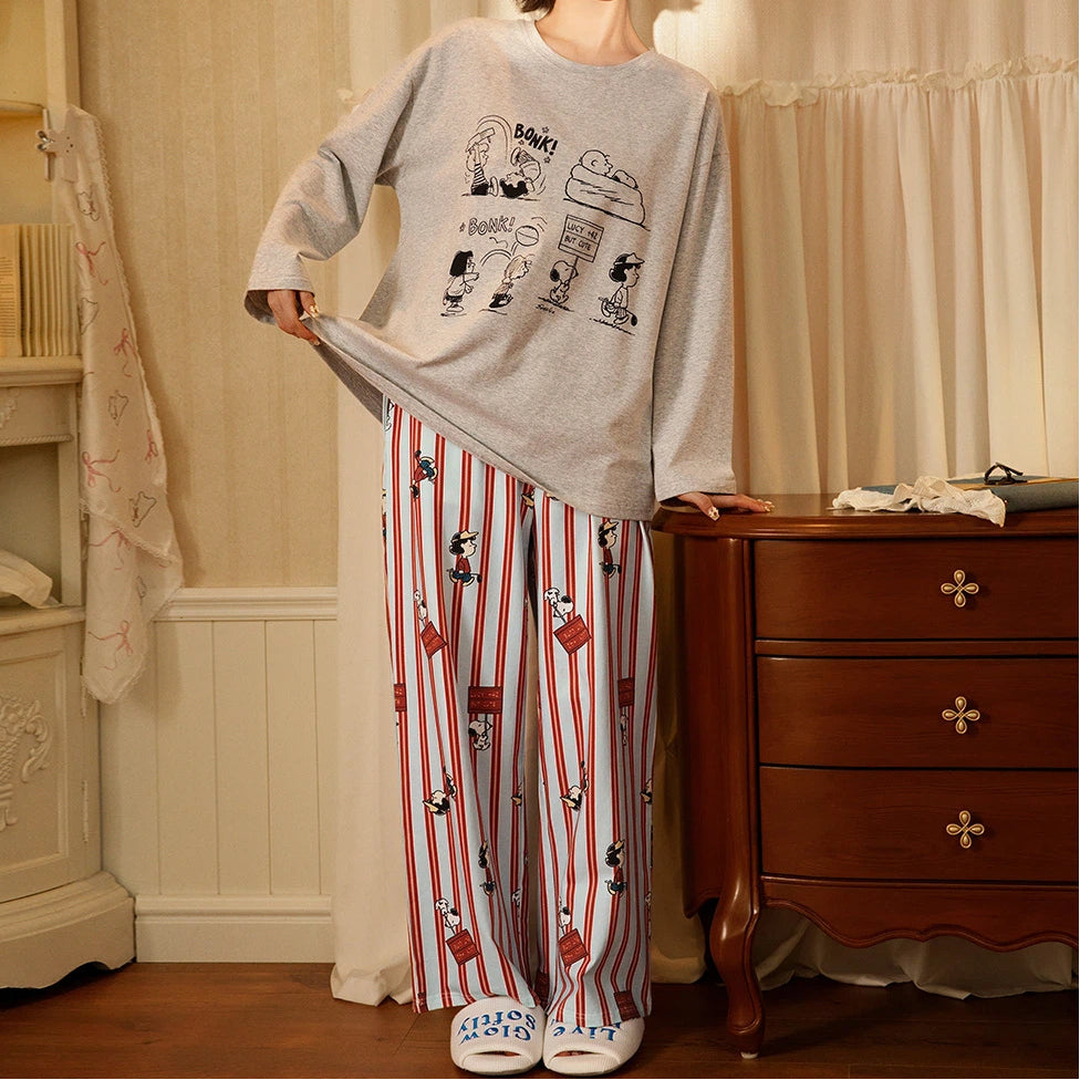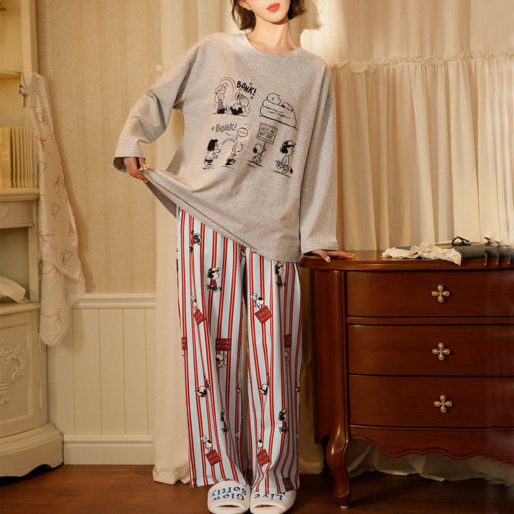 【ギフト】スヌーピー パジャマ レディース 長袖 ストライプ ボーダー かわいい カジュアル 部屋着 ルームウェア セットアップ おしゃれ プレゼント ギフト 春 ID4232