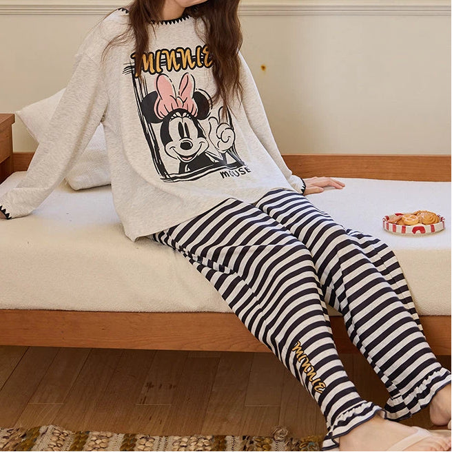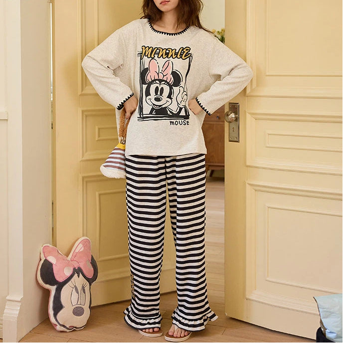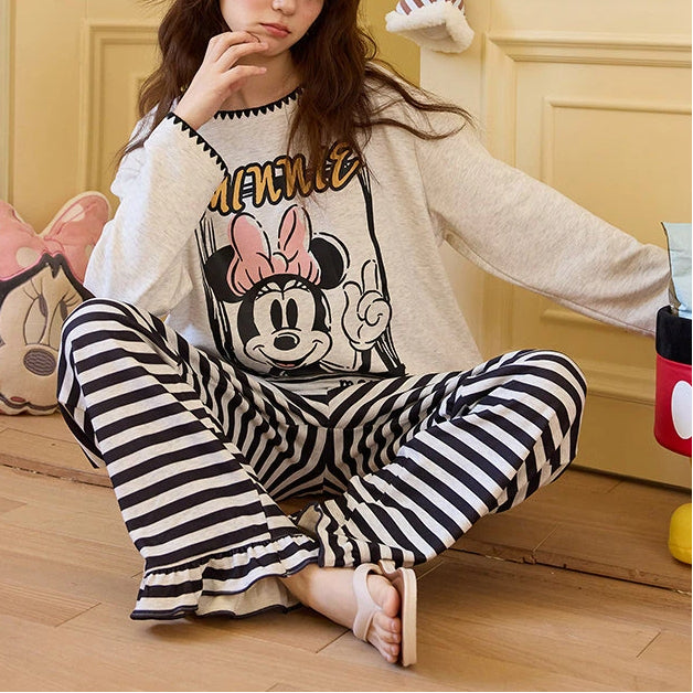 ミッキー プリント パジャマ セット 上下セット 新作 長袖 長ズボン ルームウェア 女子 部屋着 かわいい 2点セット ID4056