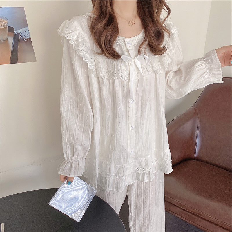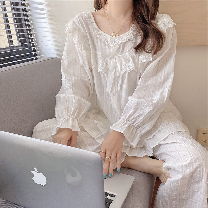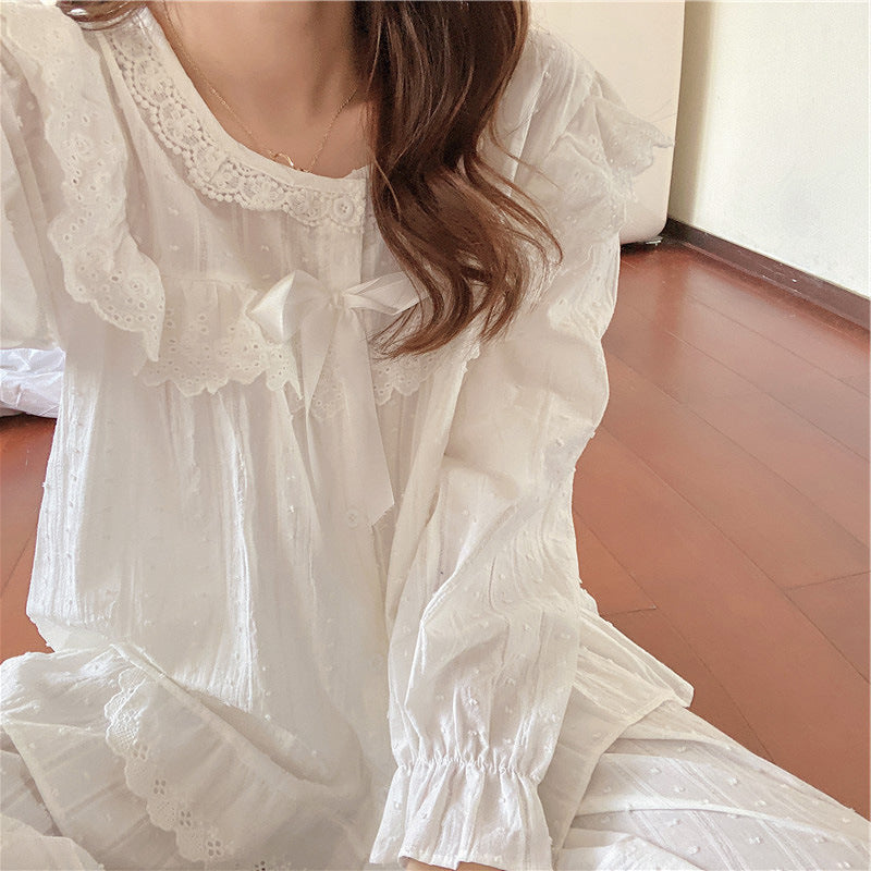 レース パジャマ レディース 長袖 ホワイト エレガント プリンセス風 韓国スタイル 花柄 刺繍 上品 女性らしい ルームウェア 部屋着 セットアップ おうち時間 リラックス ギフト ID4235