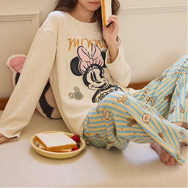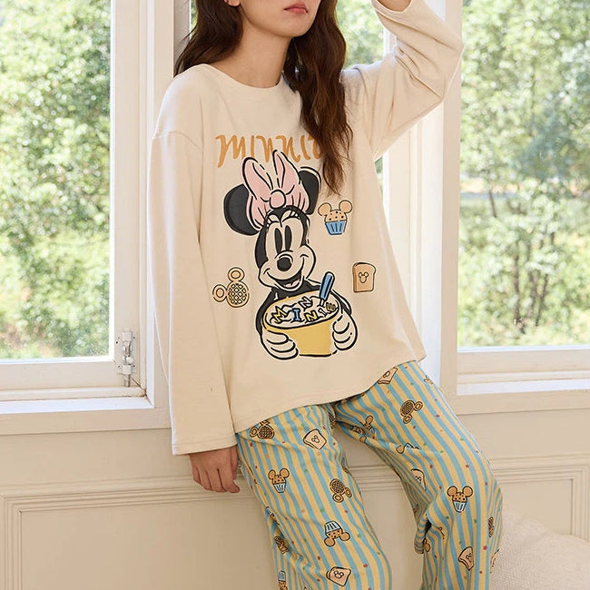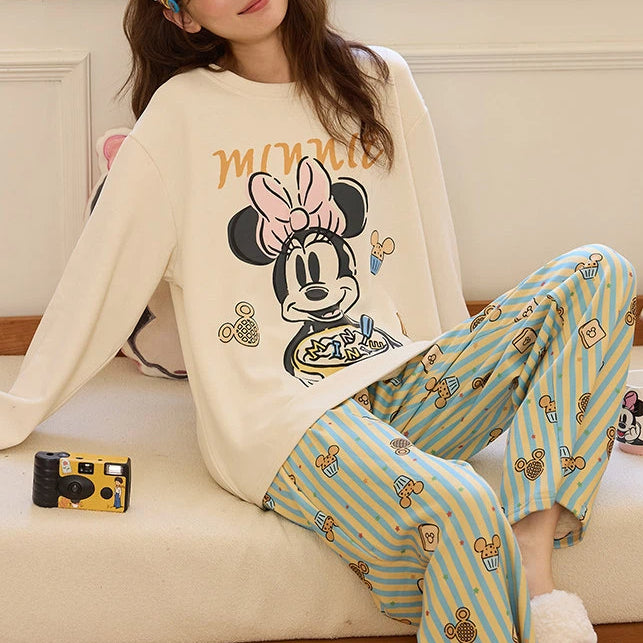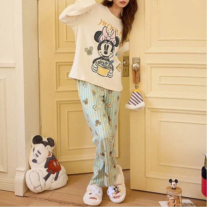 ミッキー プリント パジャマ セット 上下セット 新作 長袖 長ズボン ルームウェア 女子 部屋着 かわいい 2点セット ID4056