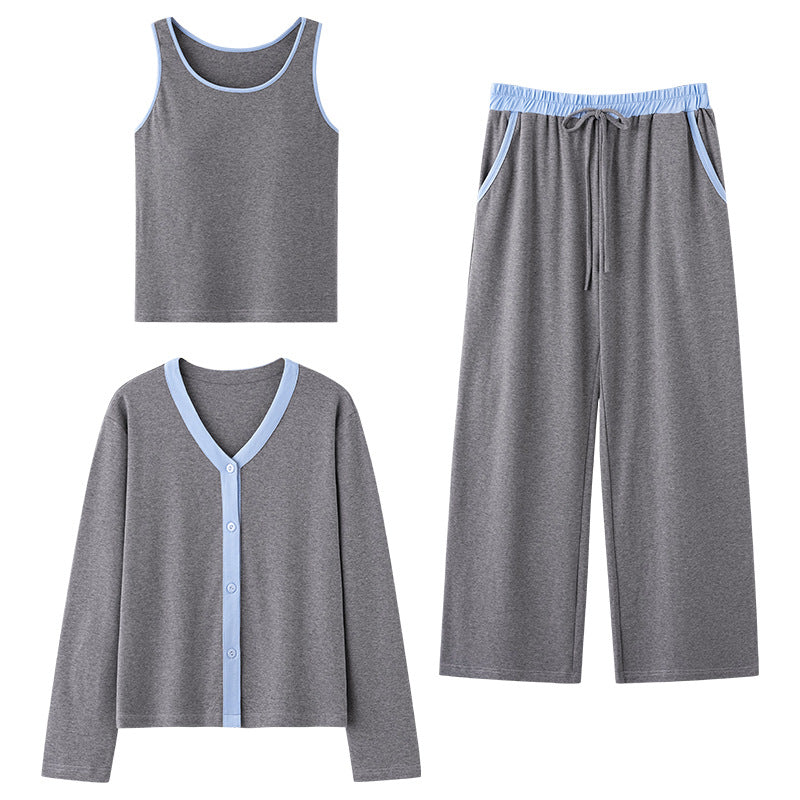 新作 綿 ベスト 3点セット パジャマ レディース カジュアル ルームウェア 綿 春 かわいい 長袖 コットン 上下セット ID4280