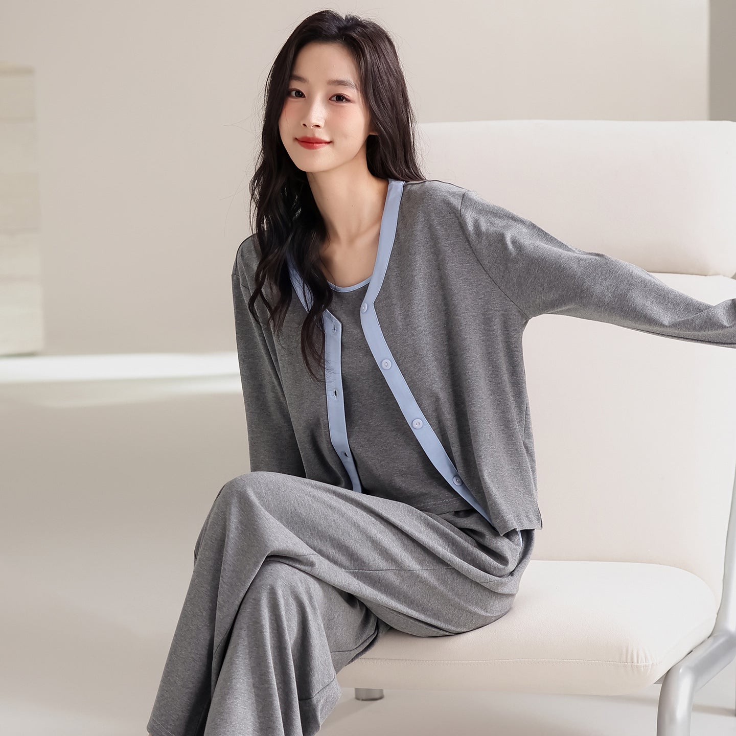 春秋 レディース かわいい グレー 韓国風 パジャマ 長袖 ロングパンツ ルームウェア かわいい 大きいサイズ 薄手 柔らか 入院 出産 部屋着 寝巻き ID4285