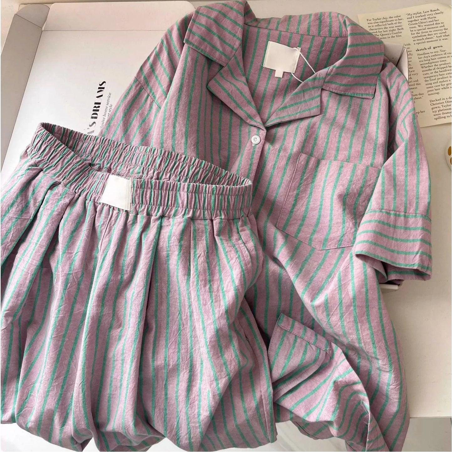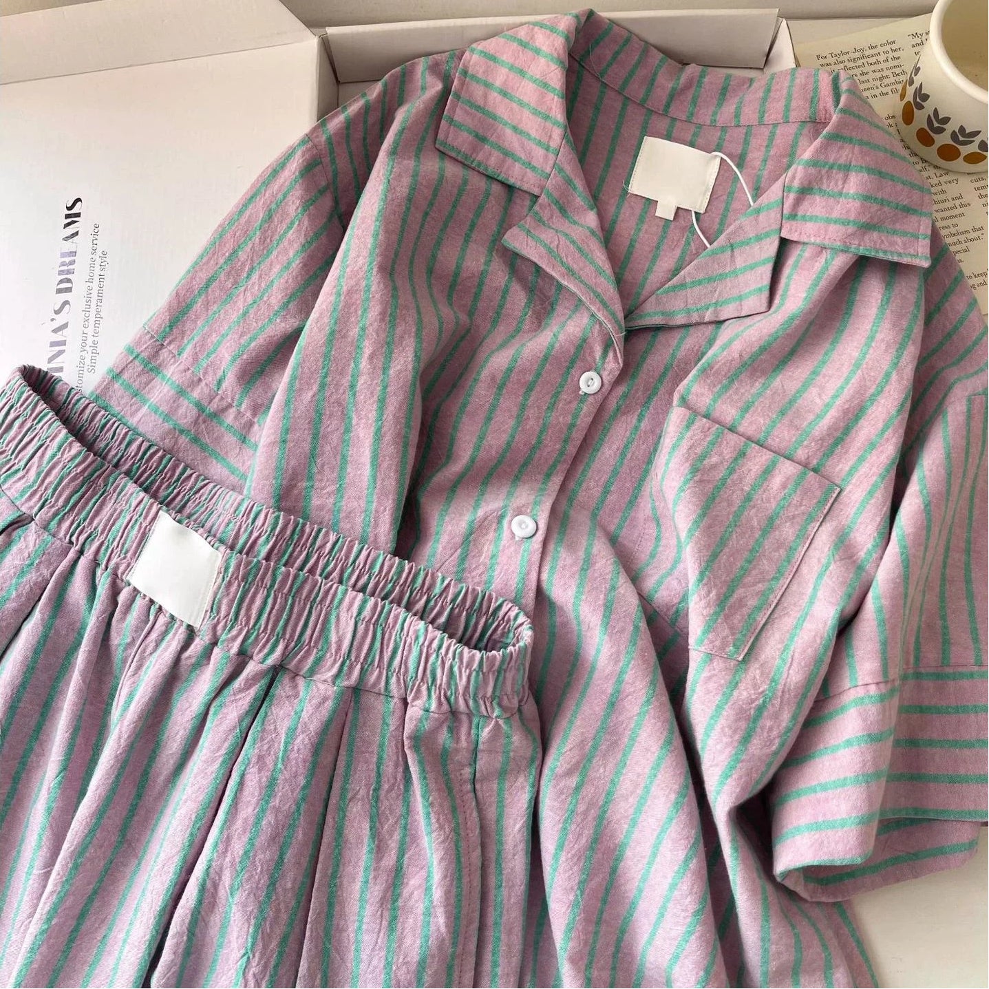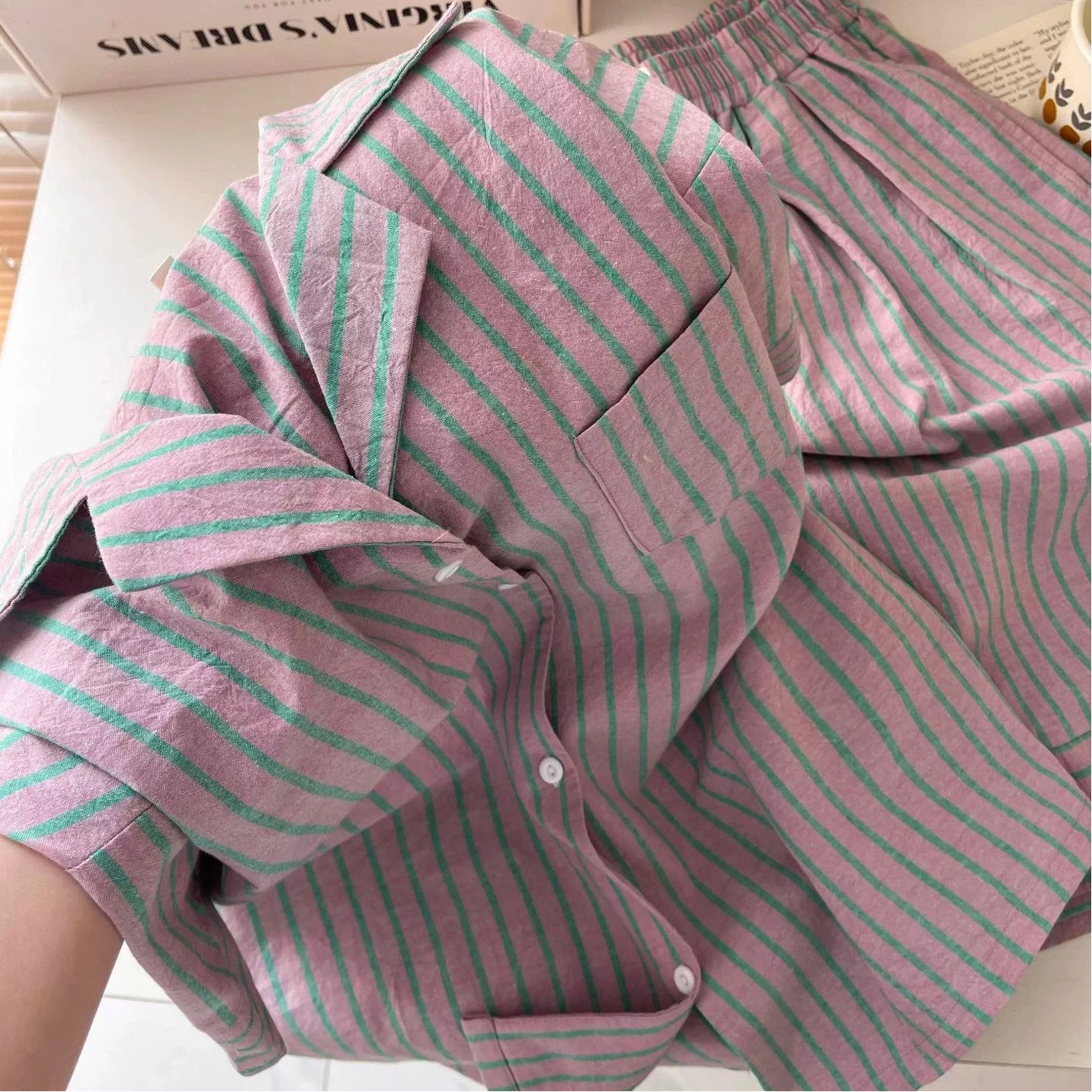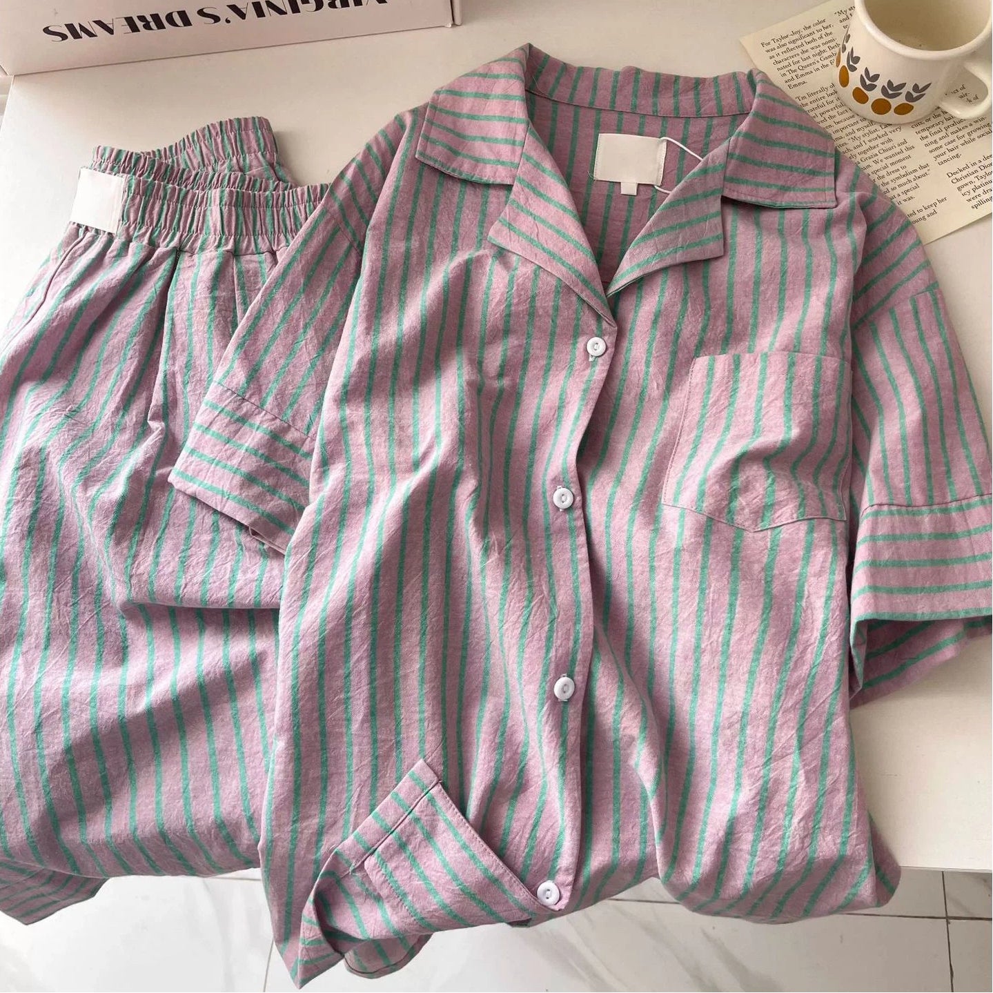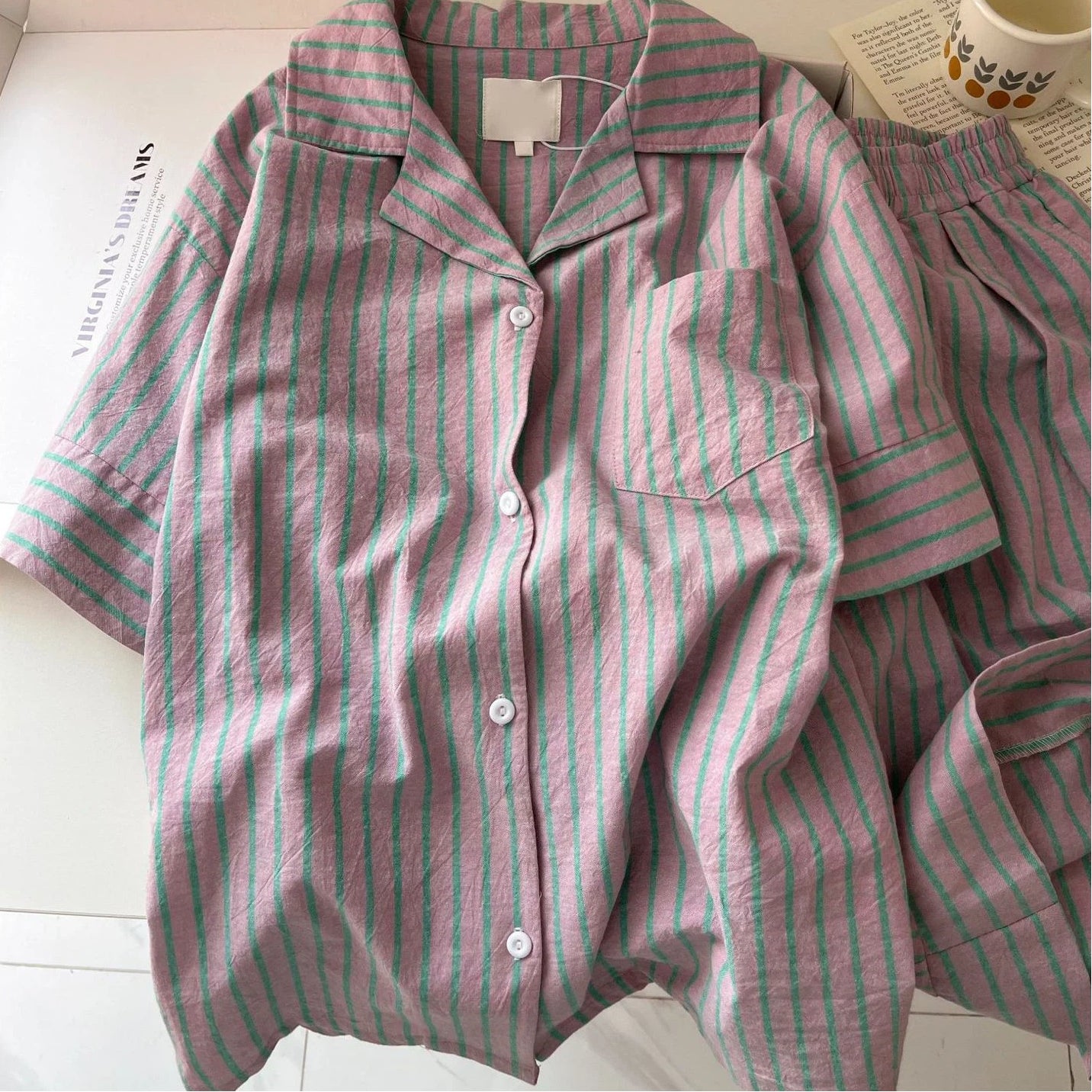 高級感 ストライプ パジャマ レディース 夏 カーディガン 半袖 セット 快適 ゆったり クロスボーダー ルームウェア 大きいサイズ 新作 ID4720