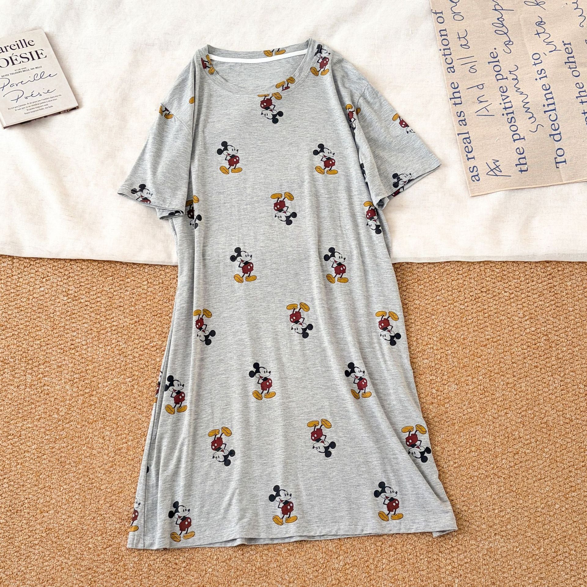 夏 新作 レディース パジャマ モダール素材 薄手 半袖 ルーズ フレア 快適 ゆったり ワンピース かわいい 小犬柄 ルームウェア 柔らかい ID4721